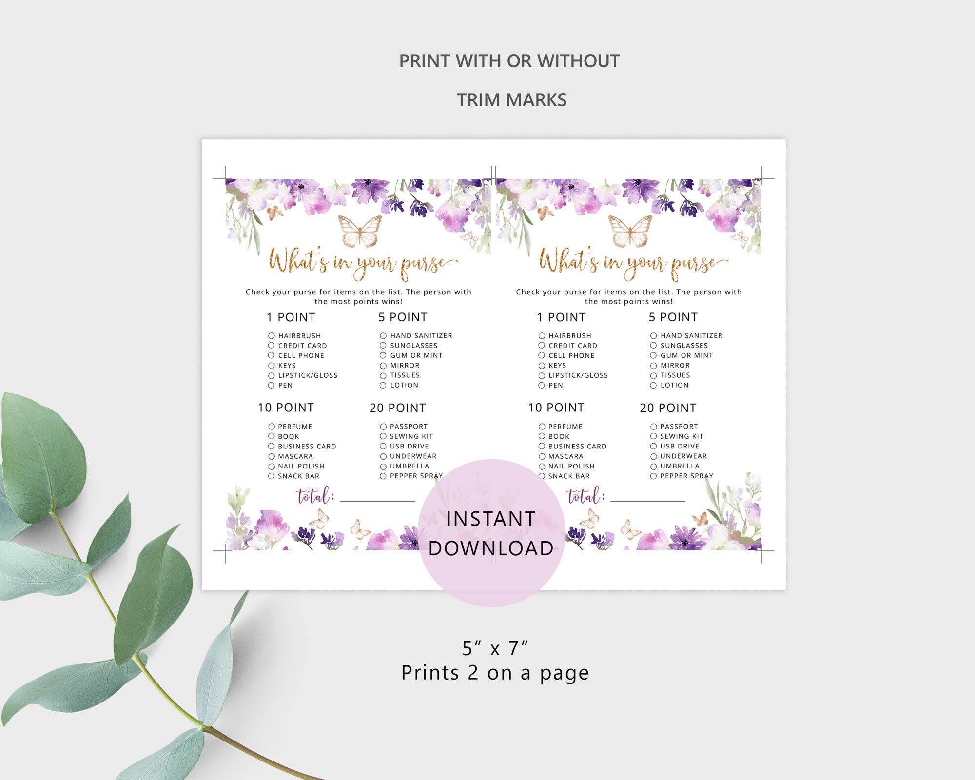 What's in Your Purse Game. Purple gold butterfly what's in your purse baby shower games. Butterfly Whats in Your Purse
