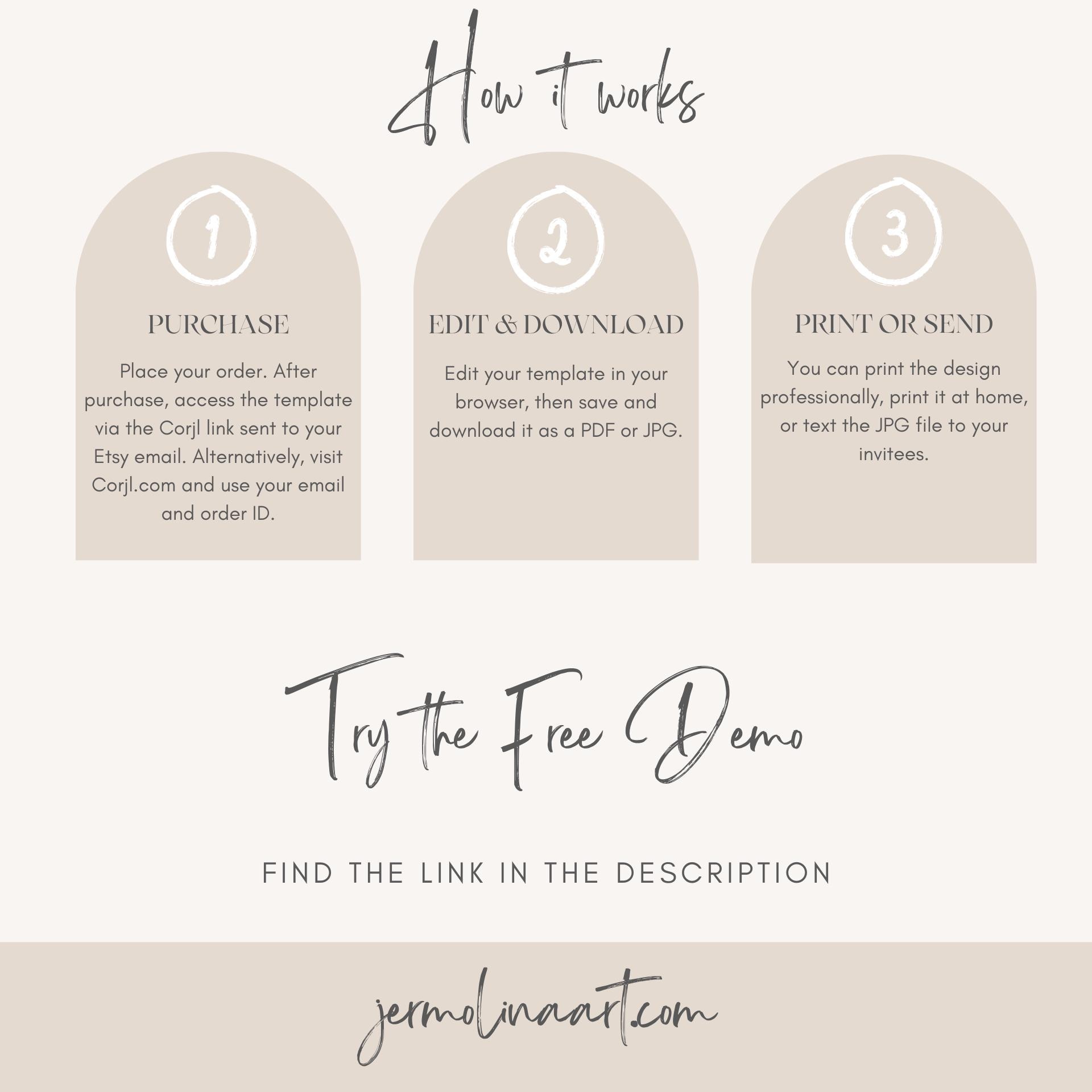 After your purchase, you will receive an email from Corjl (sent to your Etsy-registered email). Follow the link to access and edit your template directly in your web browser—no software required!
