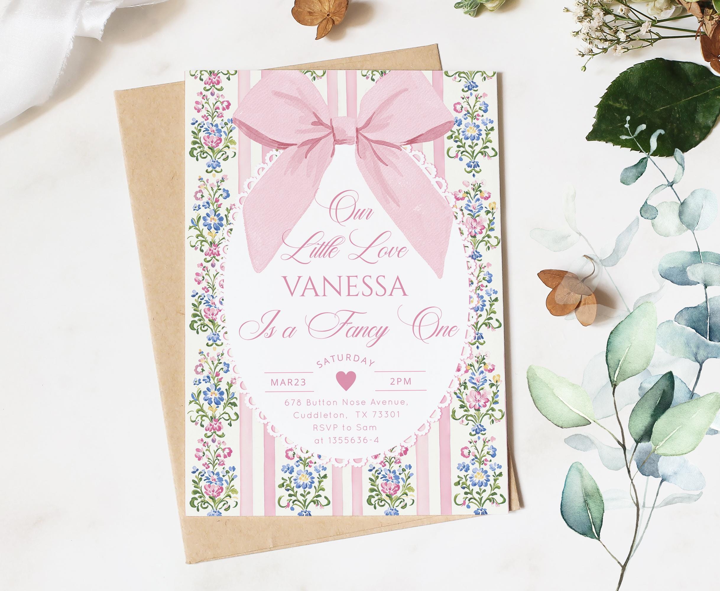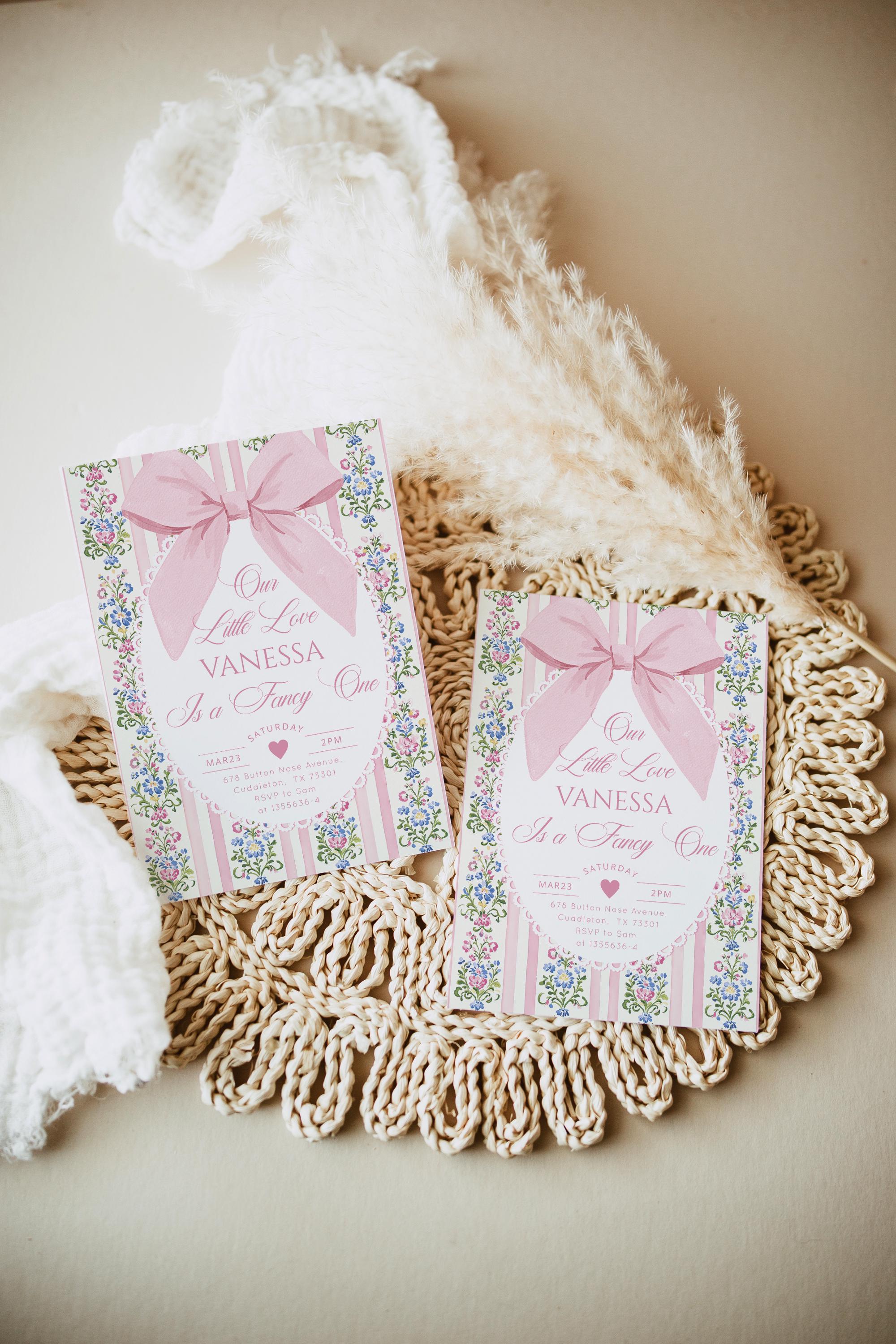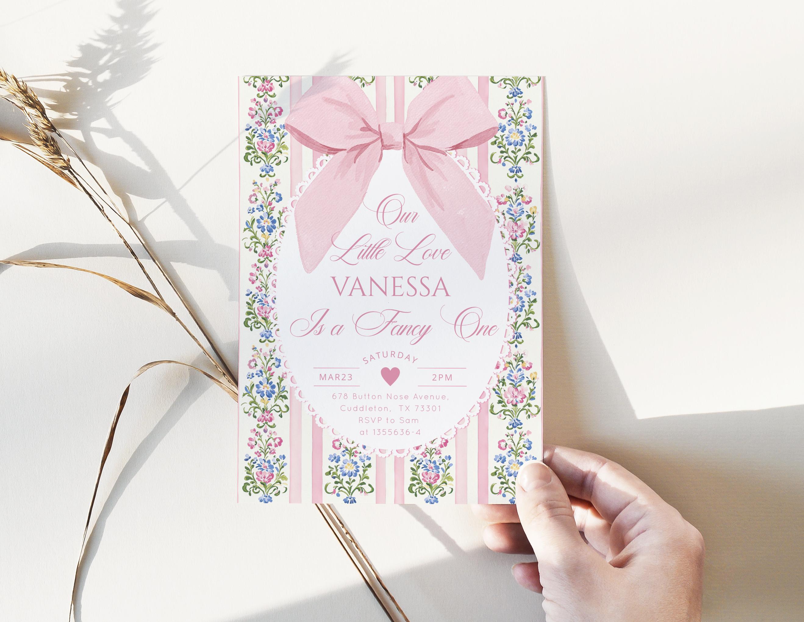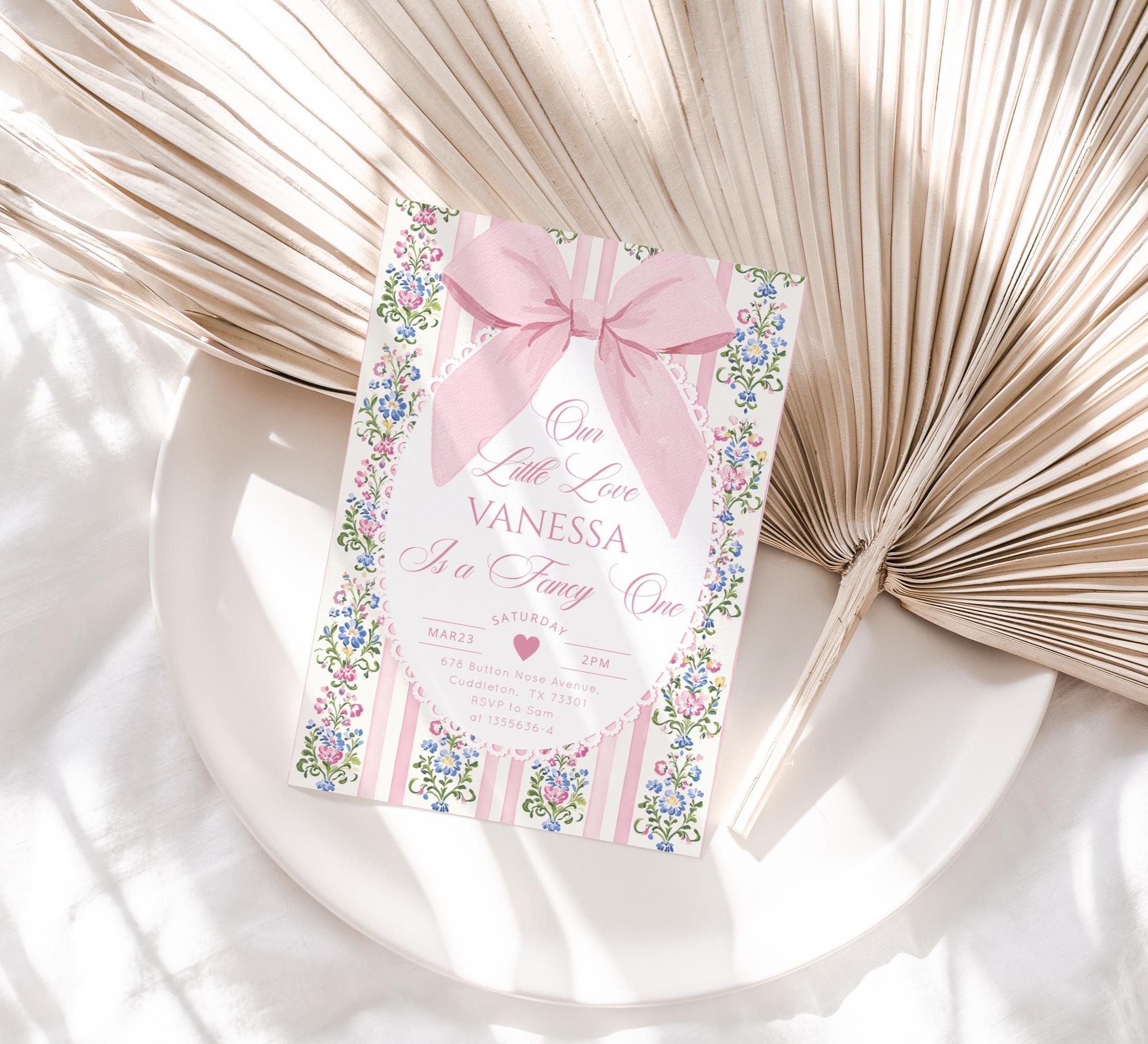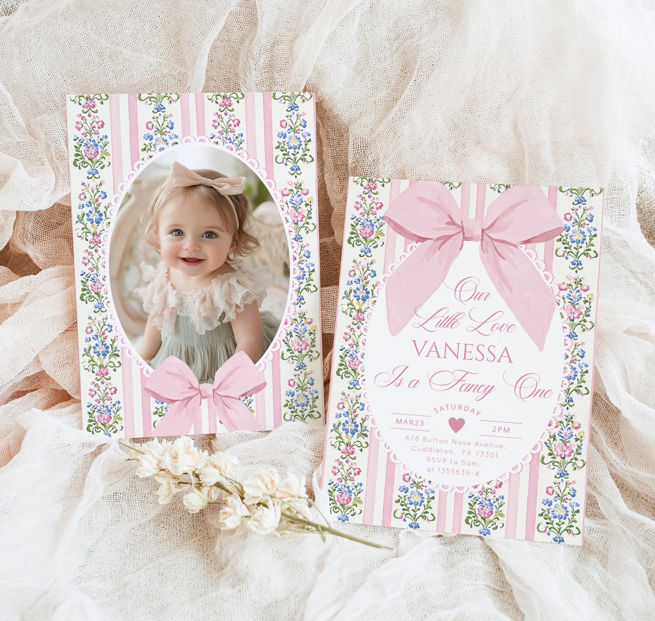 Love Shack Fancy One Photo 1st Birthday invitation, Editable Corjl Template