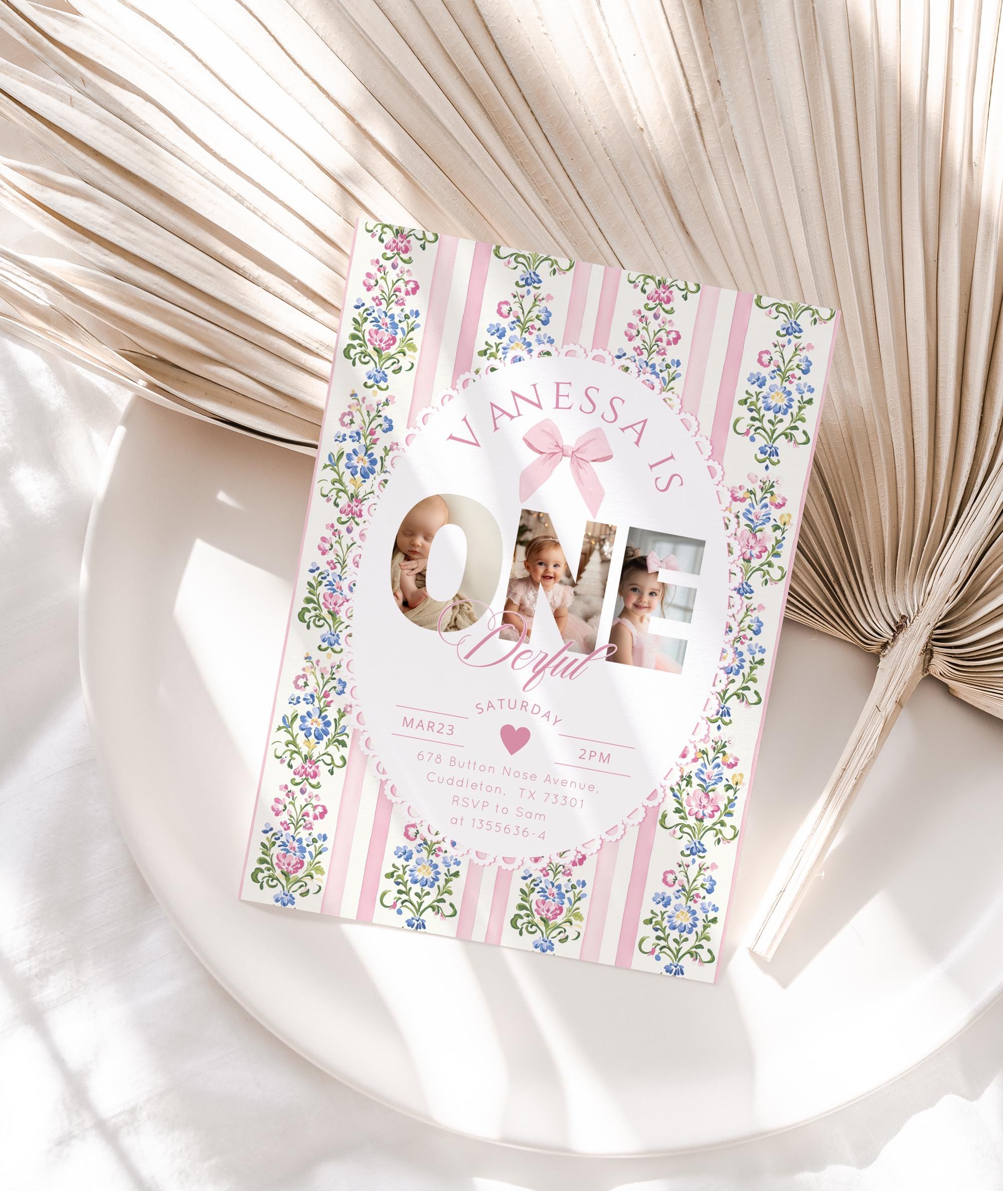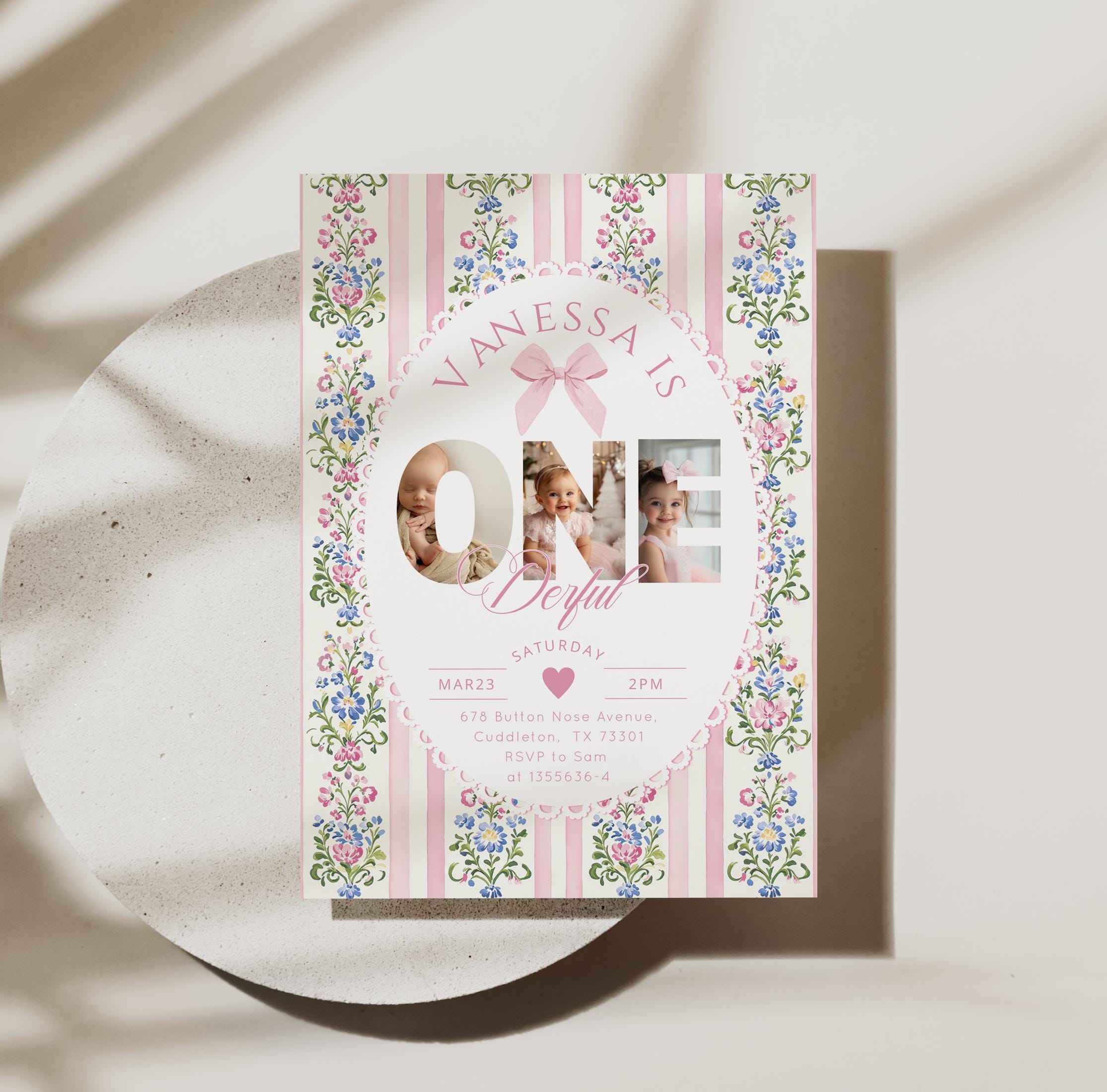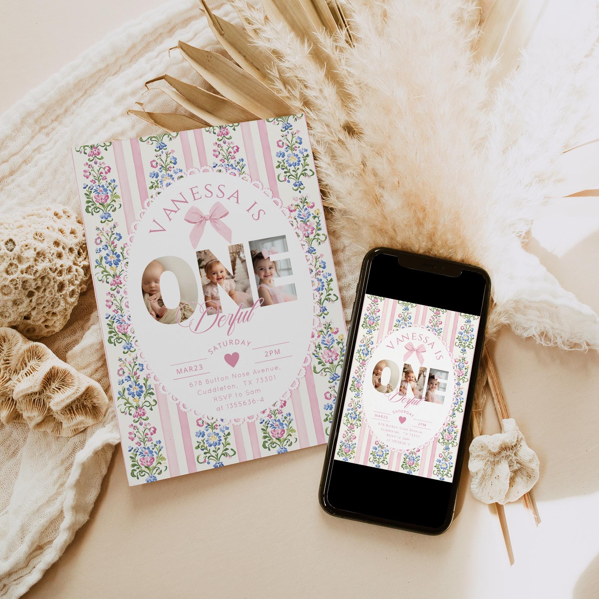 Onederful Photo collage 1st Birthday invitation, Love Shack Editable Corjl Template
