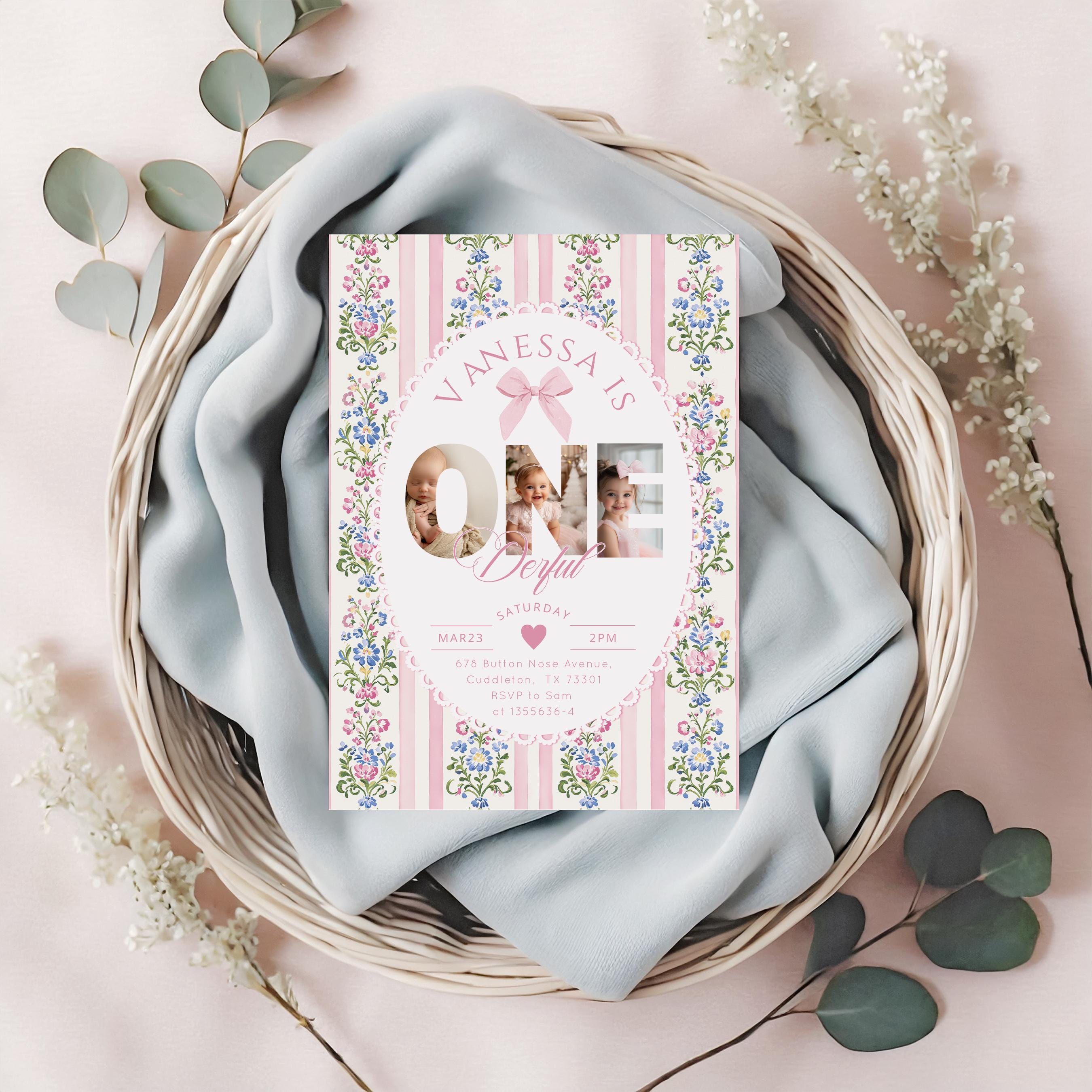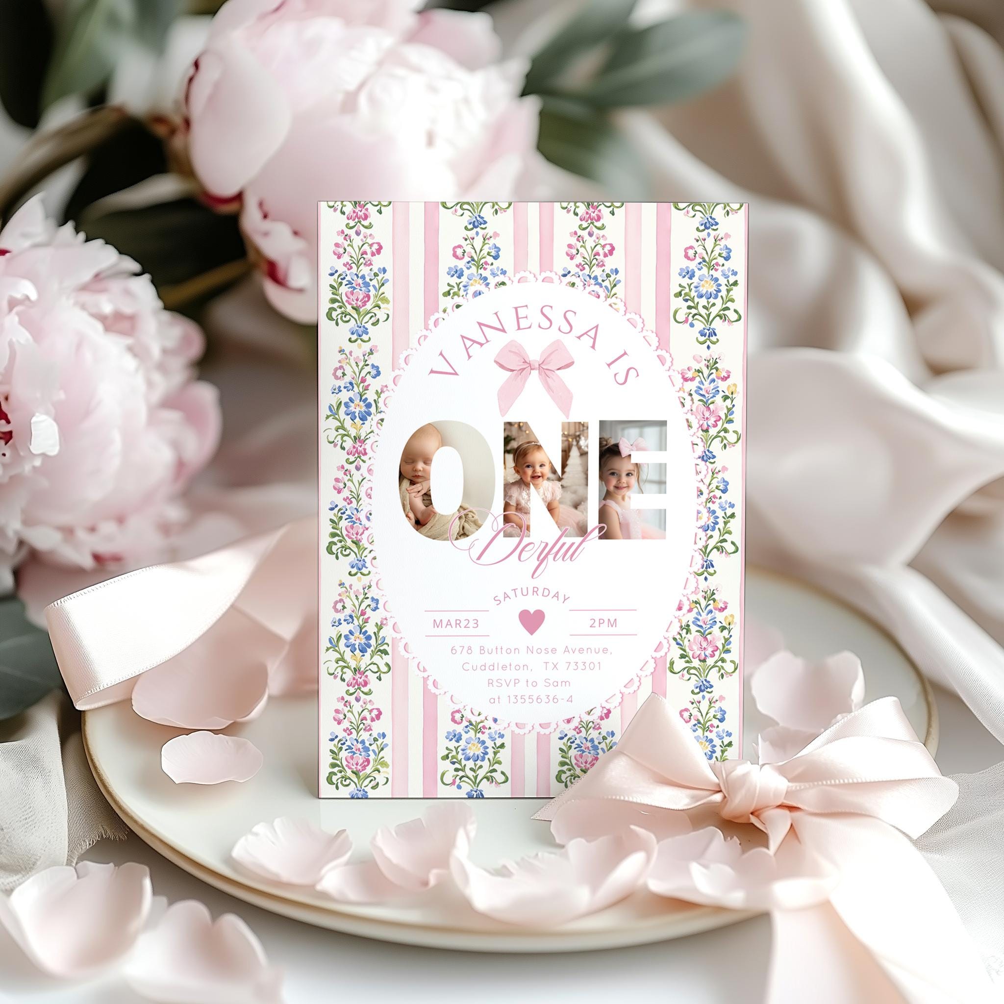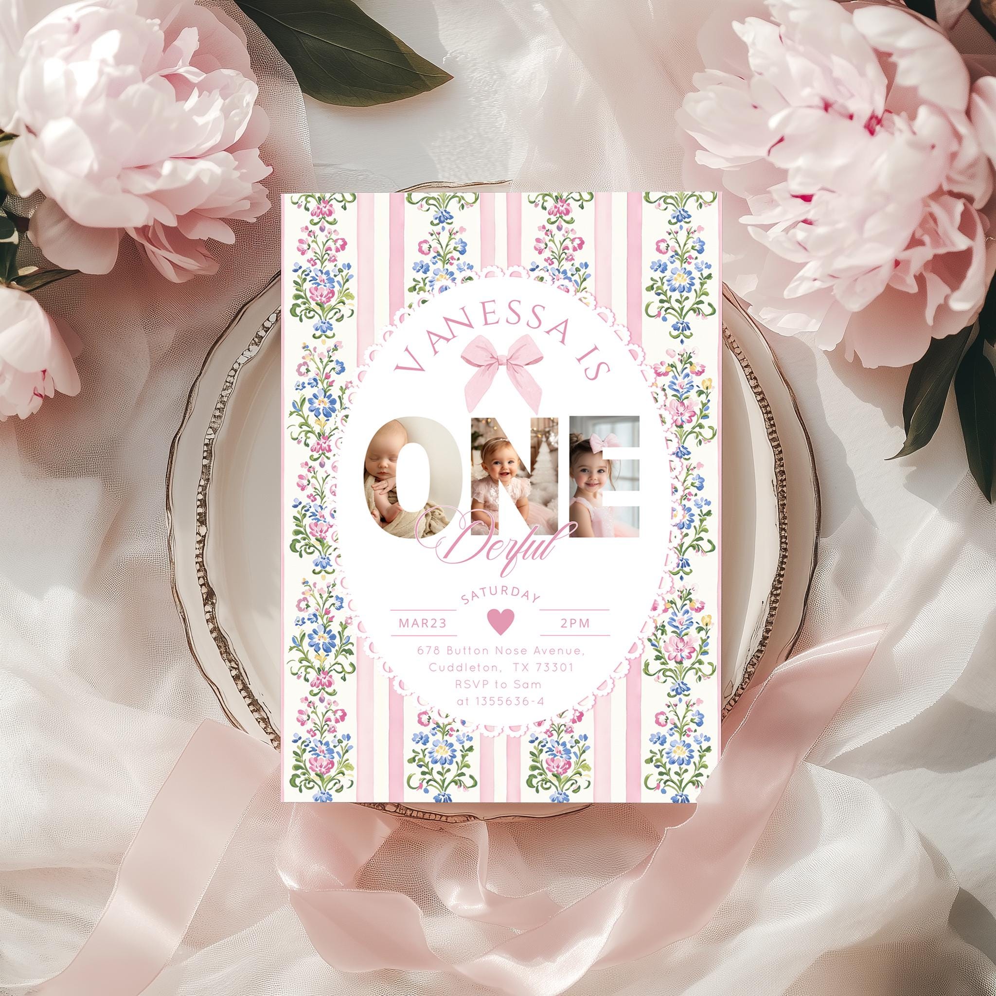 Onederful Photo collage 1st Birthday invitation, Love Shack Editable Corjl Template