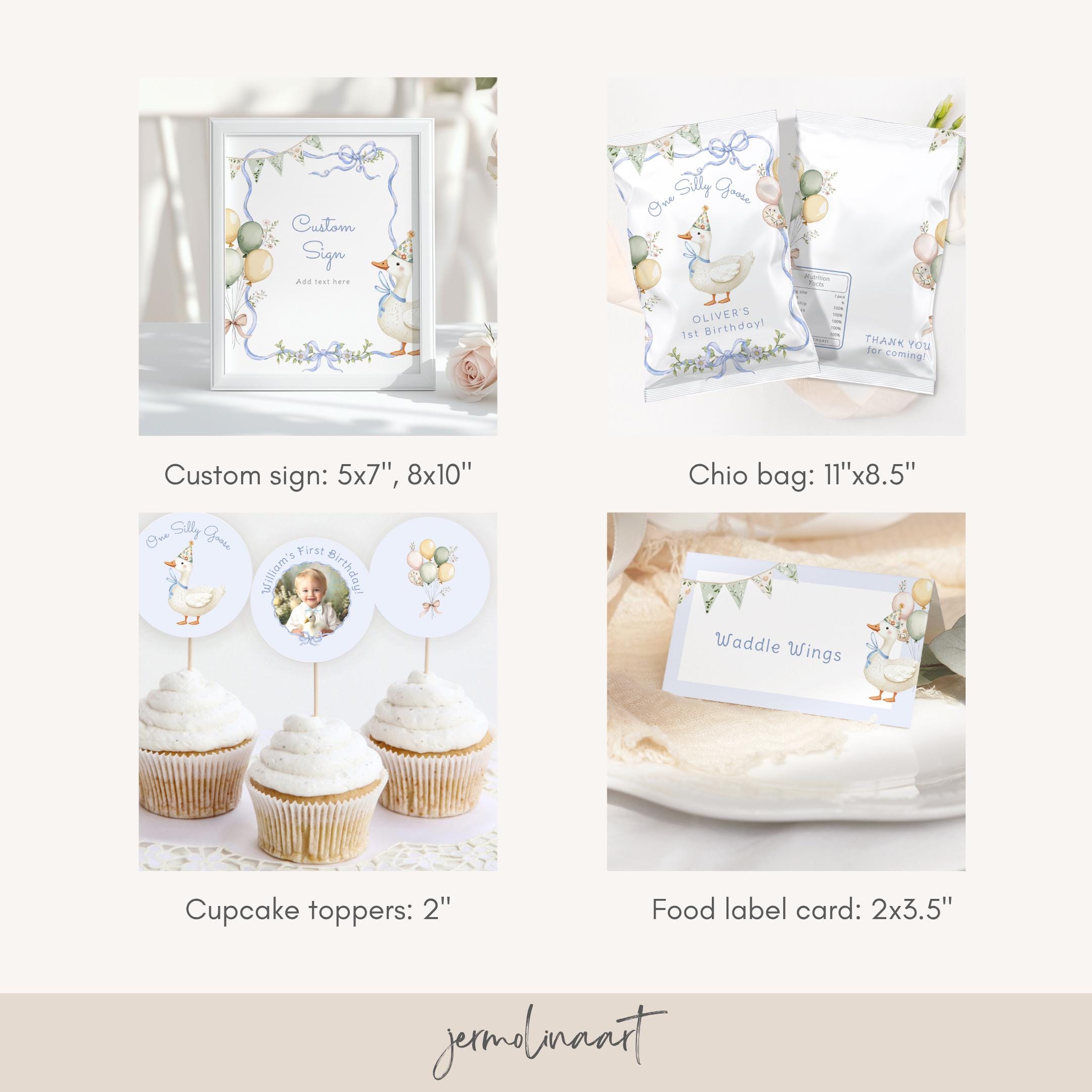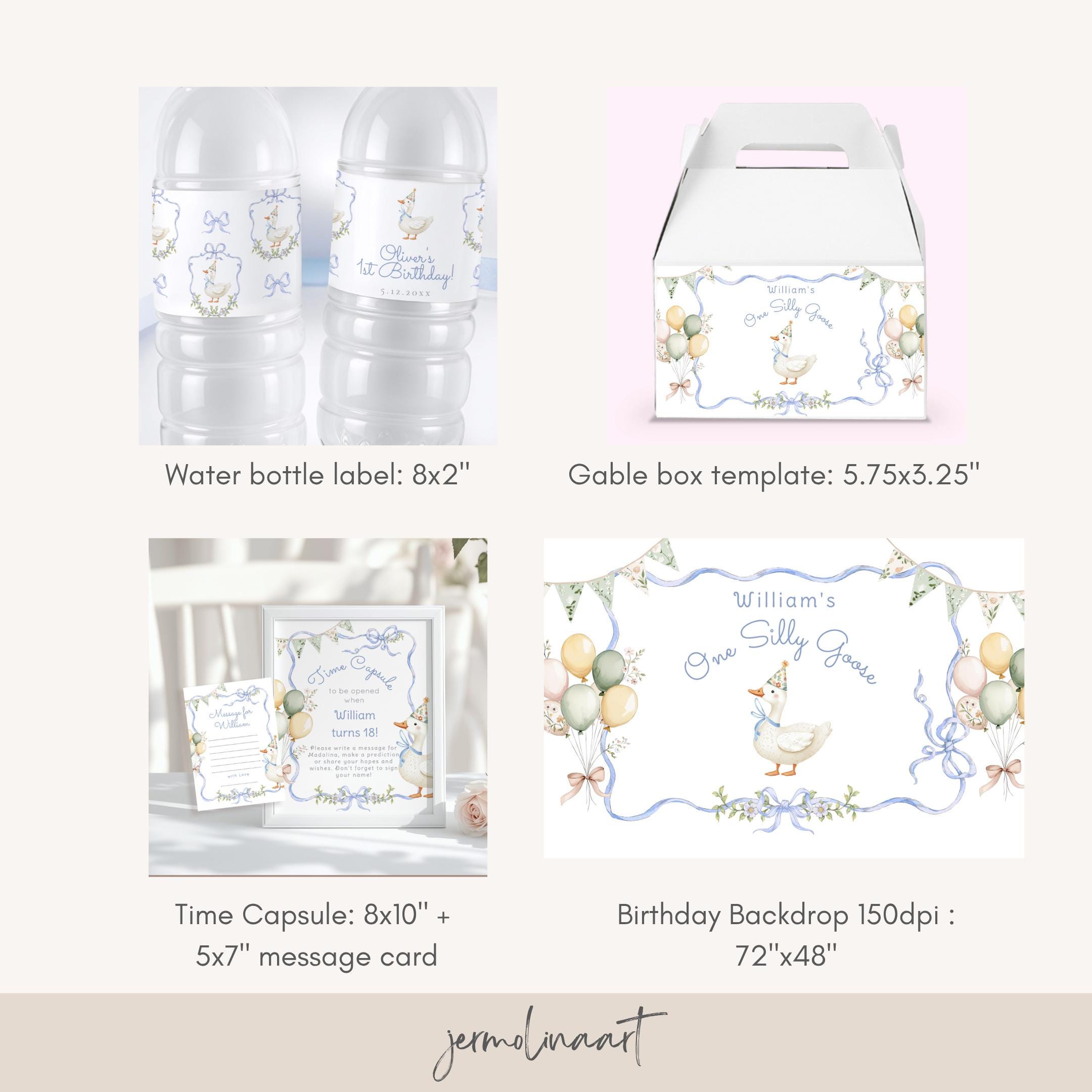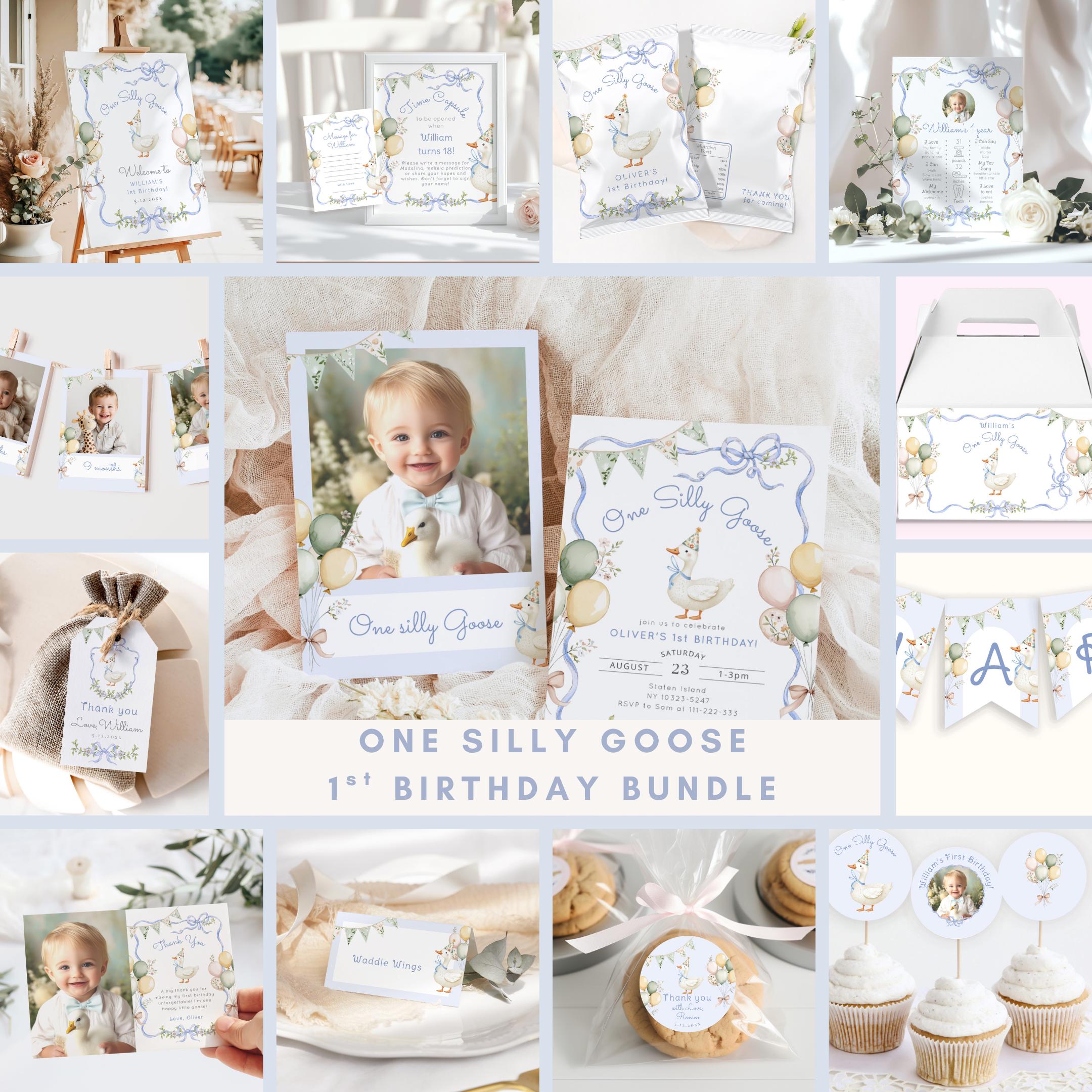 One Silly Goose 1st Birthday Bundle: Blue Whimsical Party Decor