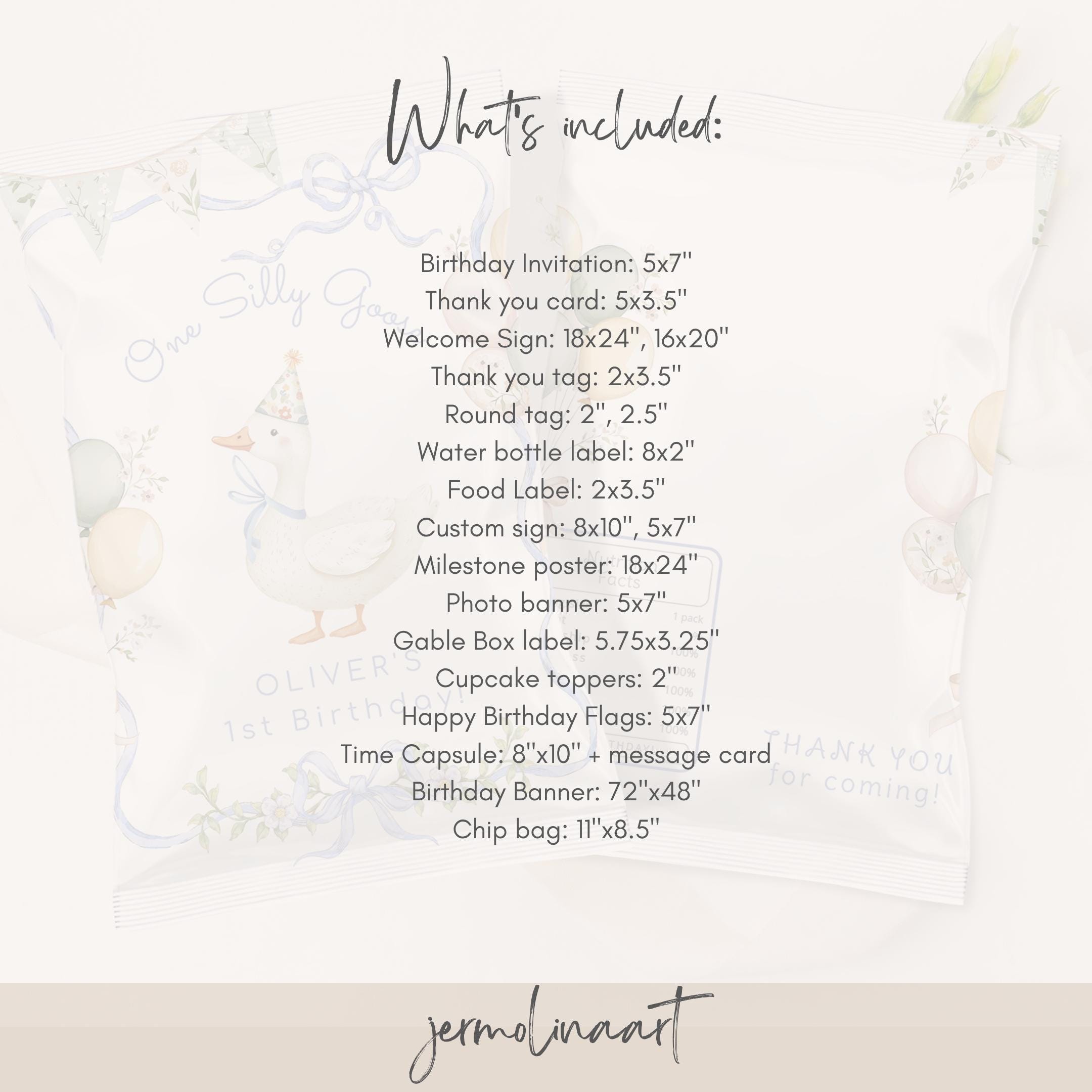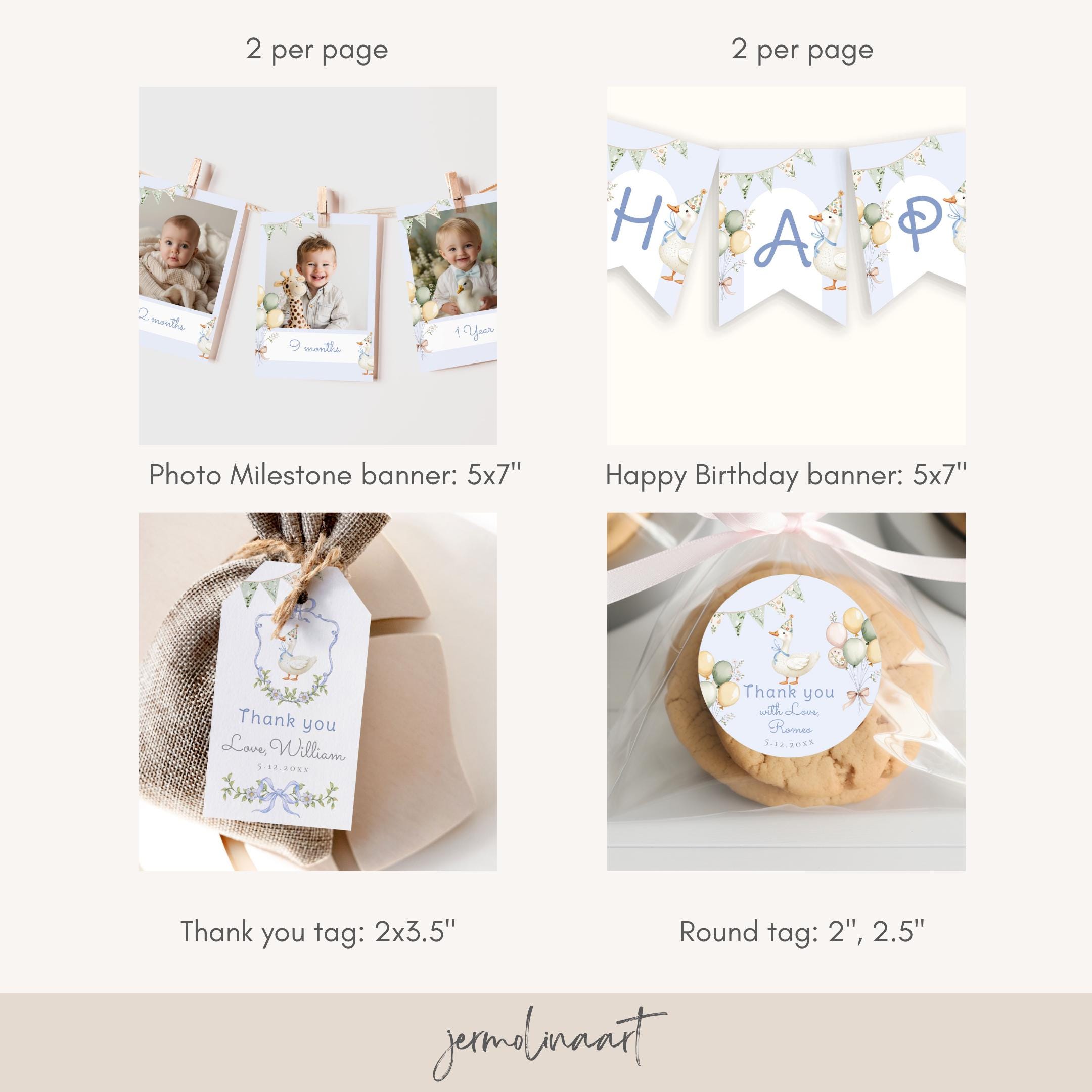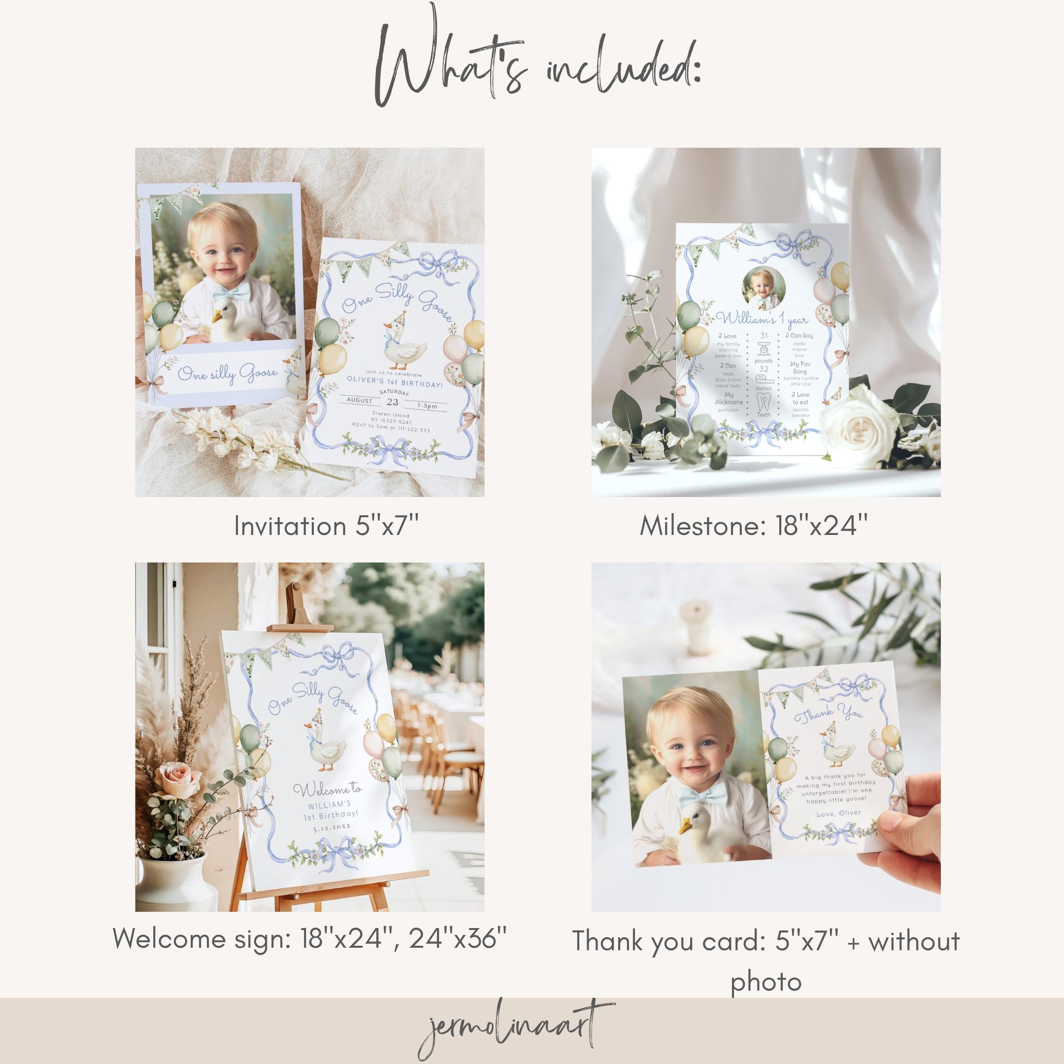 One Silly Goose 1st Birthday Bundle: Blue Whimsical Party Decor