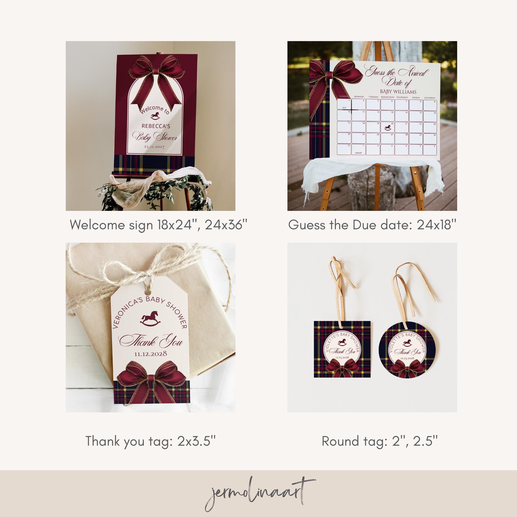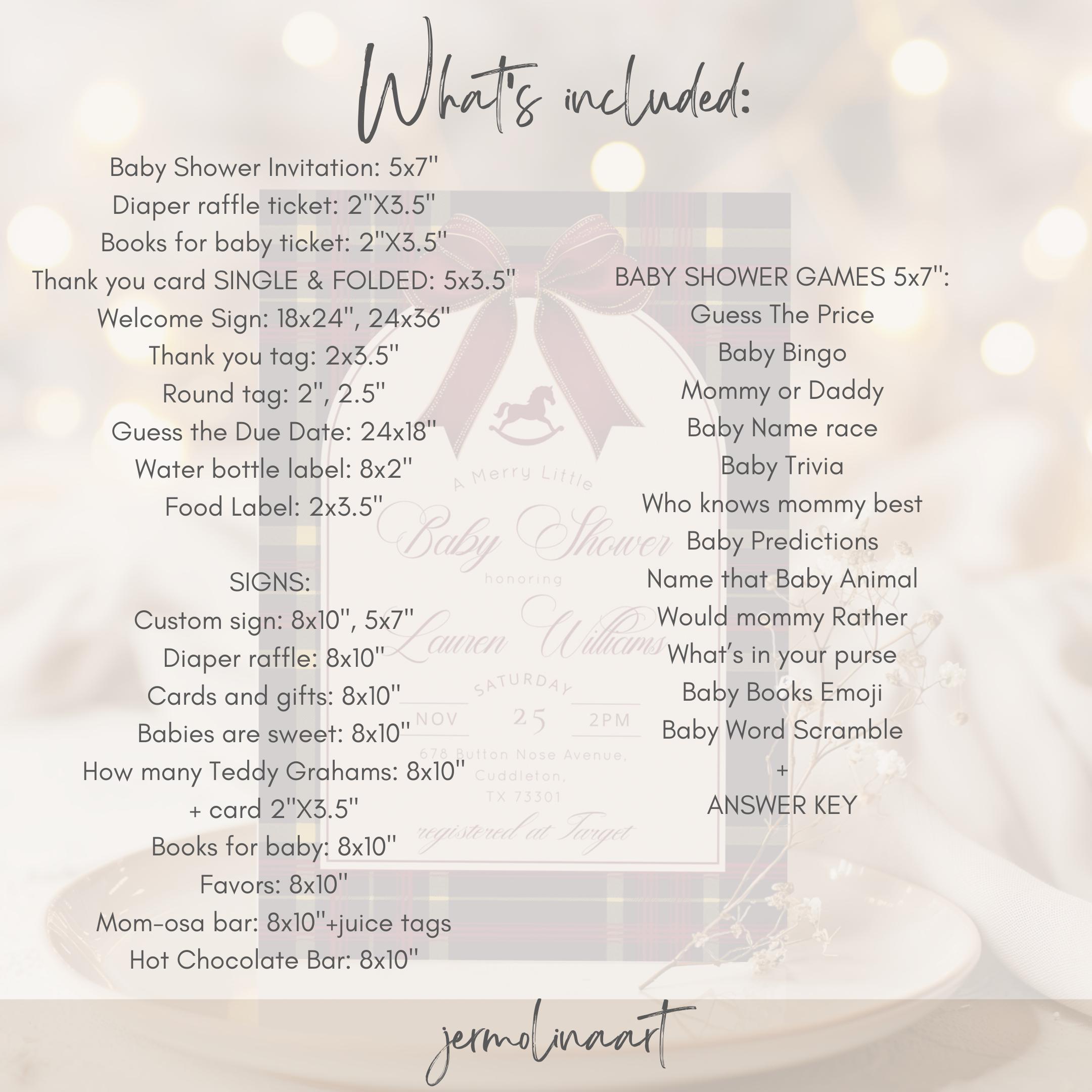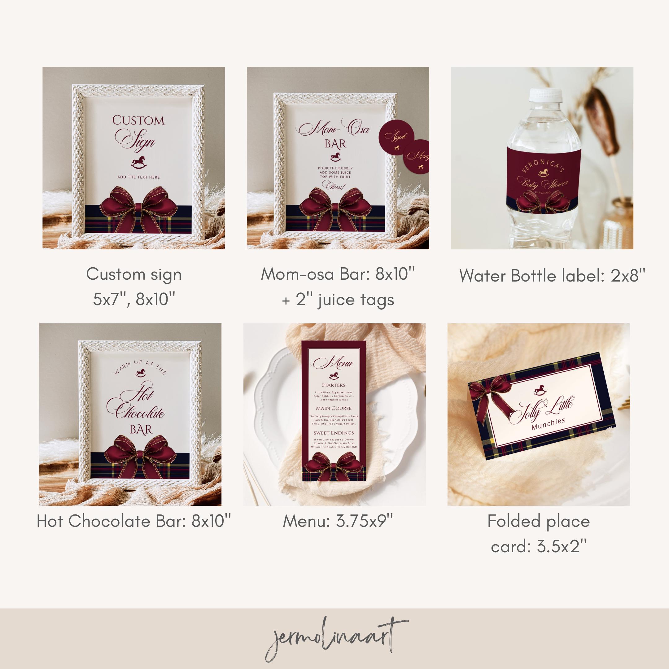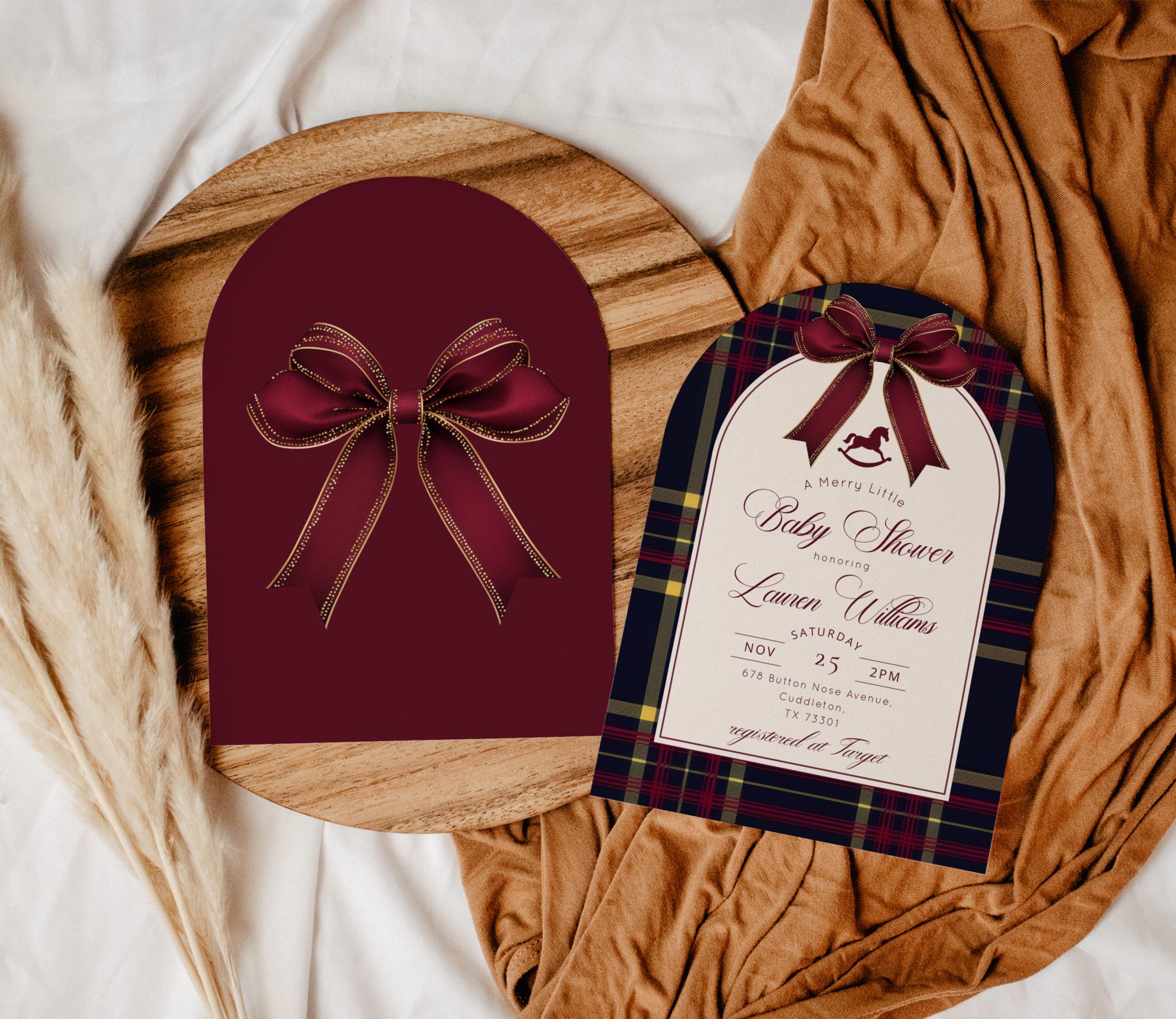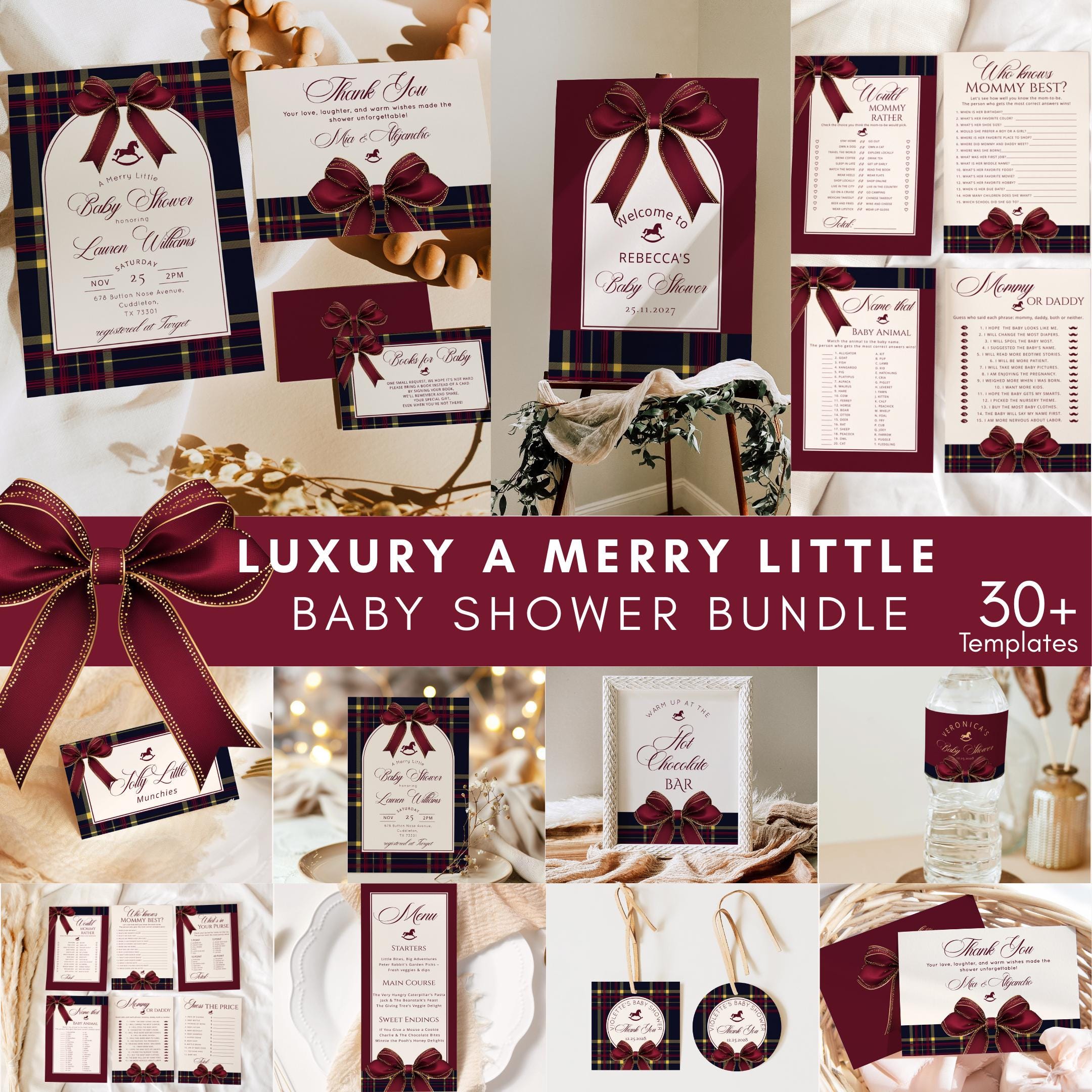 Luxury A Merry Little Baby Shower Bundle | Christmas Deep Red Bow Editable Corjl Template