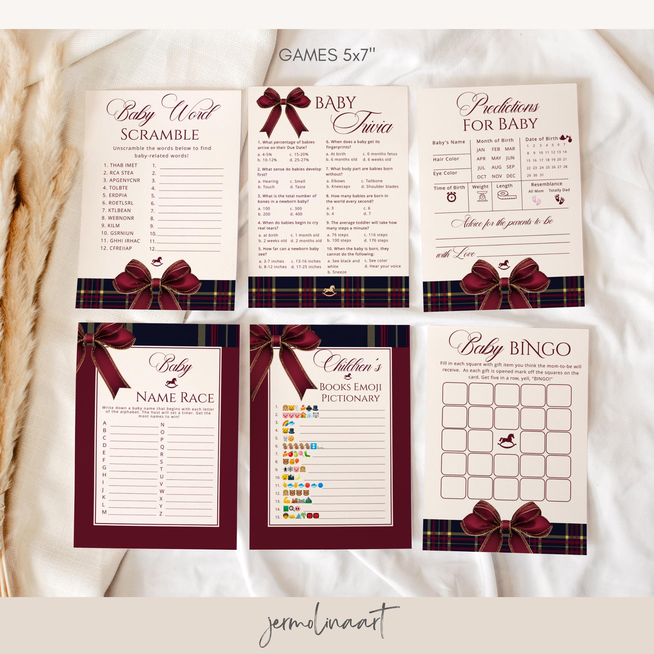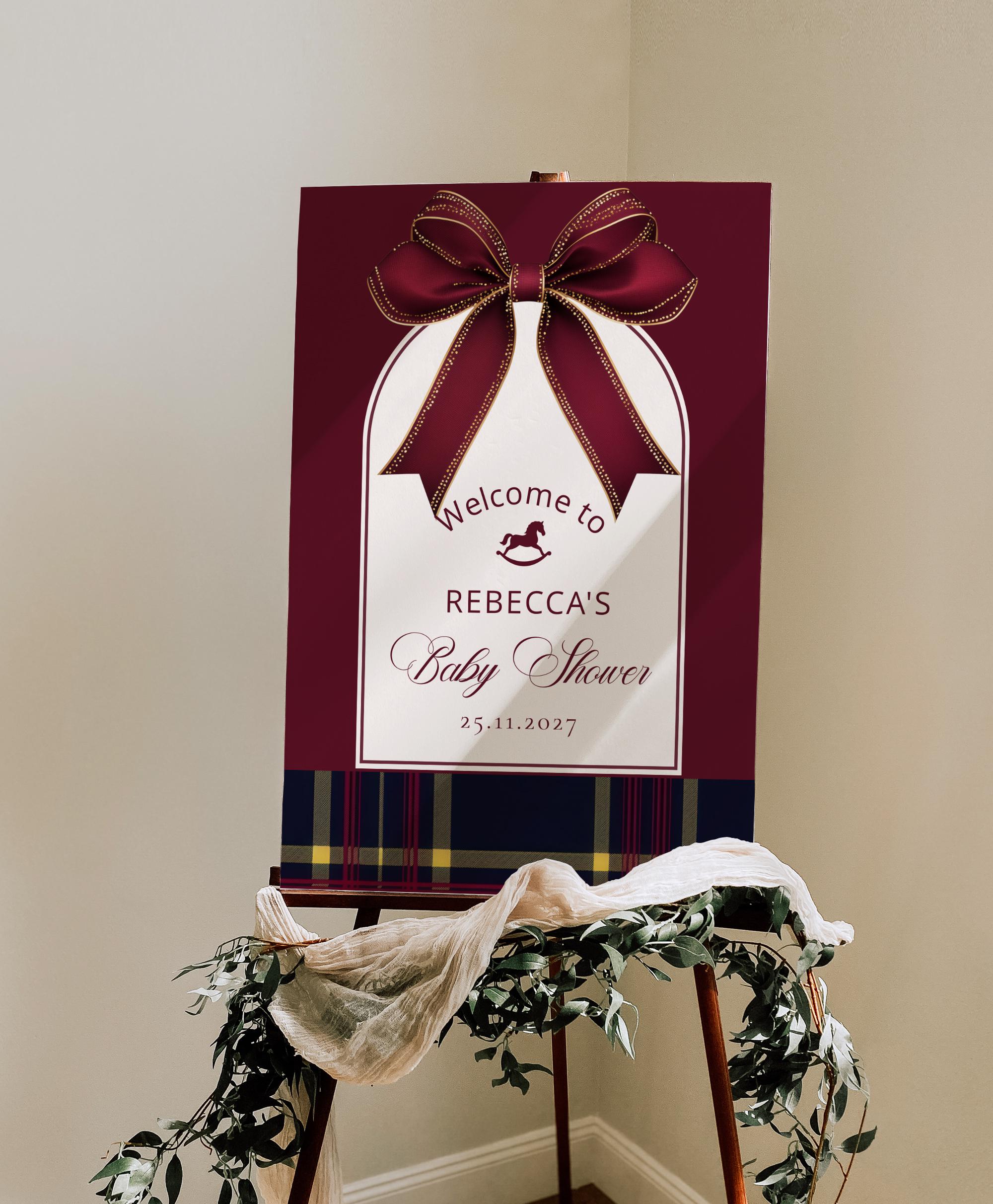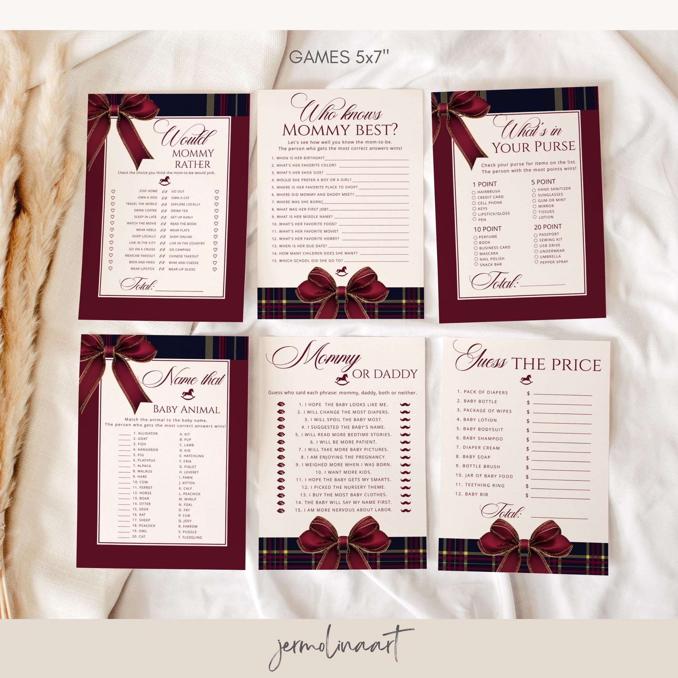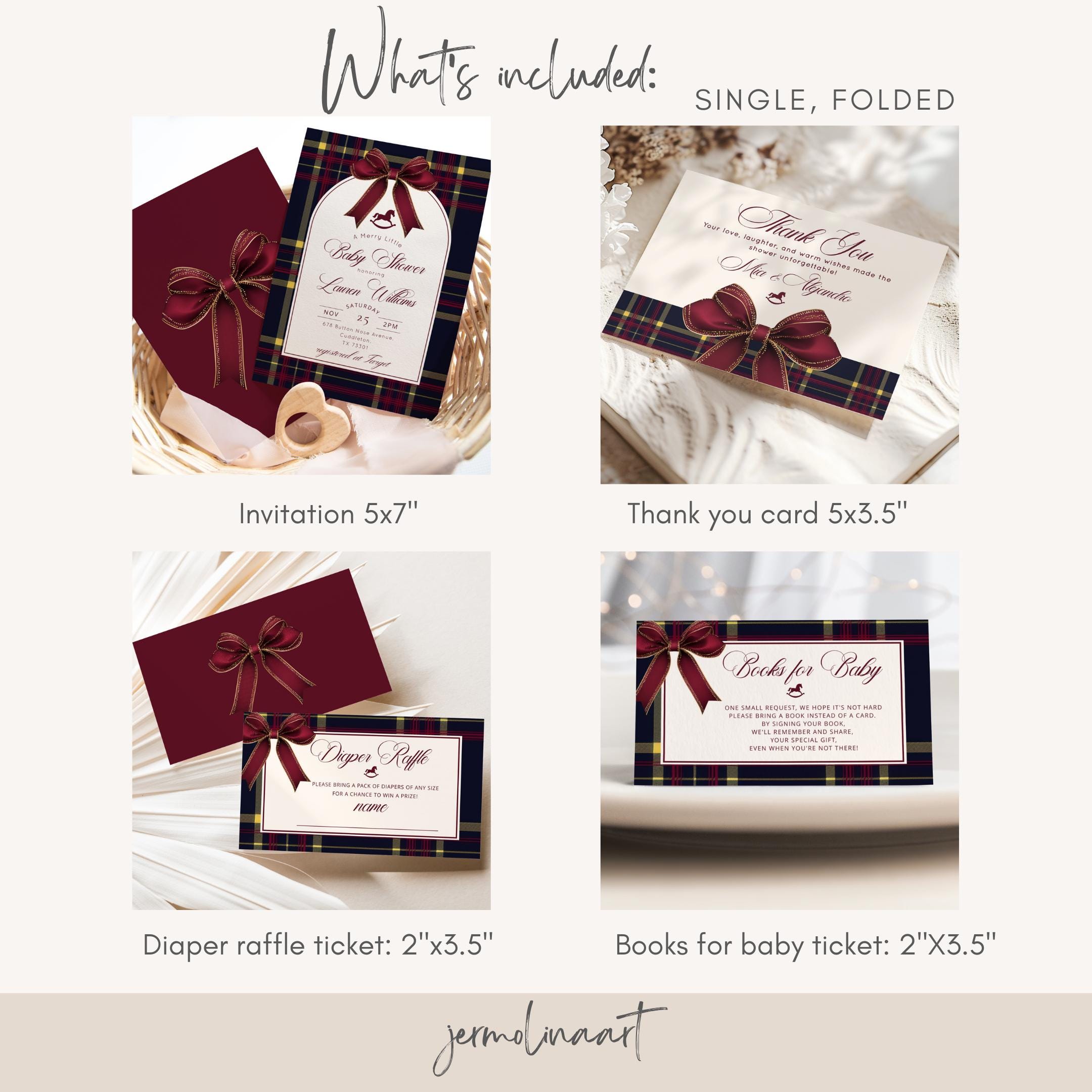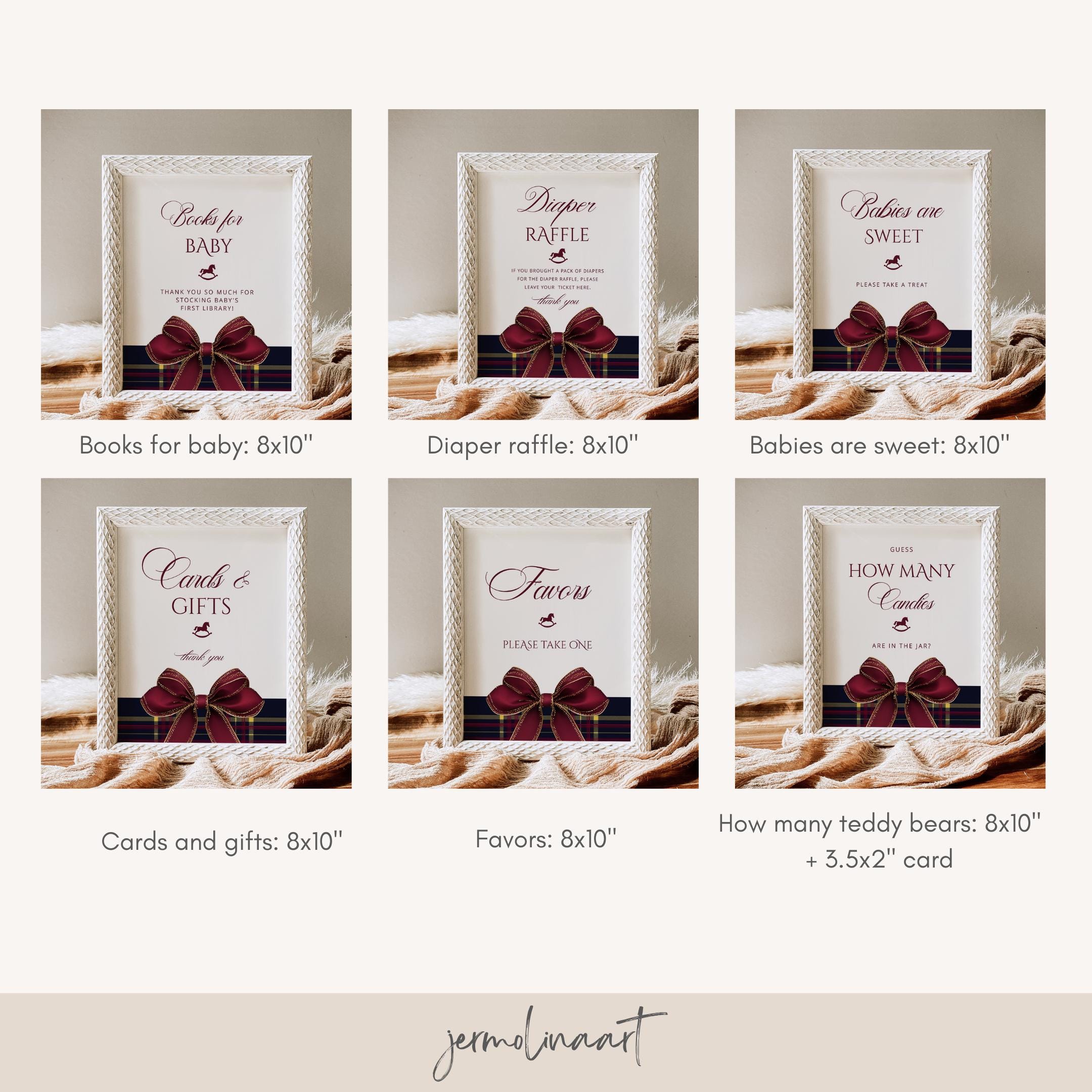 Luxury A Merry Little Baby Shower Bundle | Christmas Deep Red Bow Editable Corjl Template
