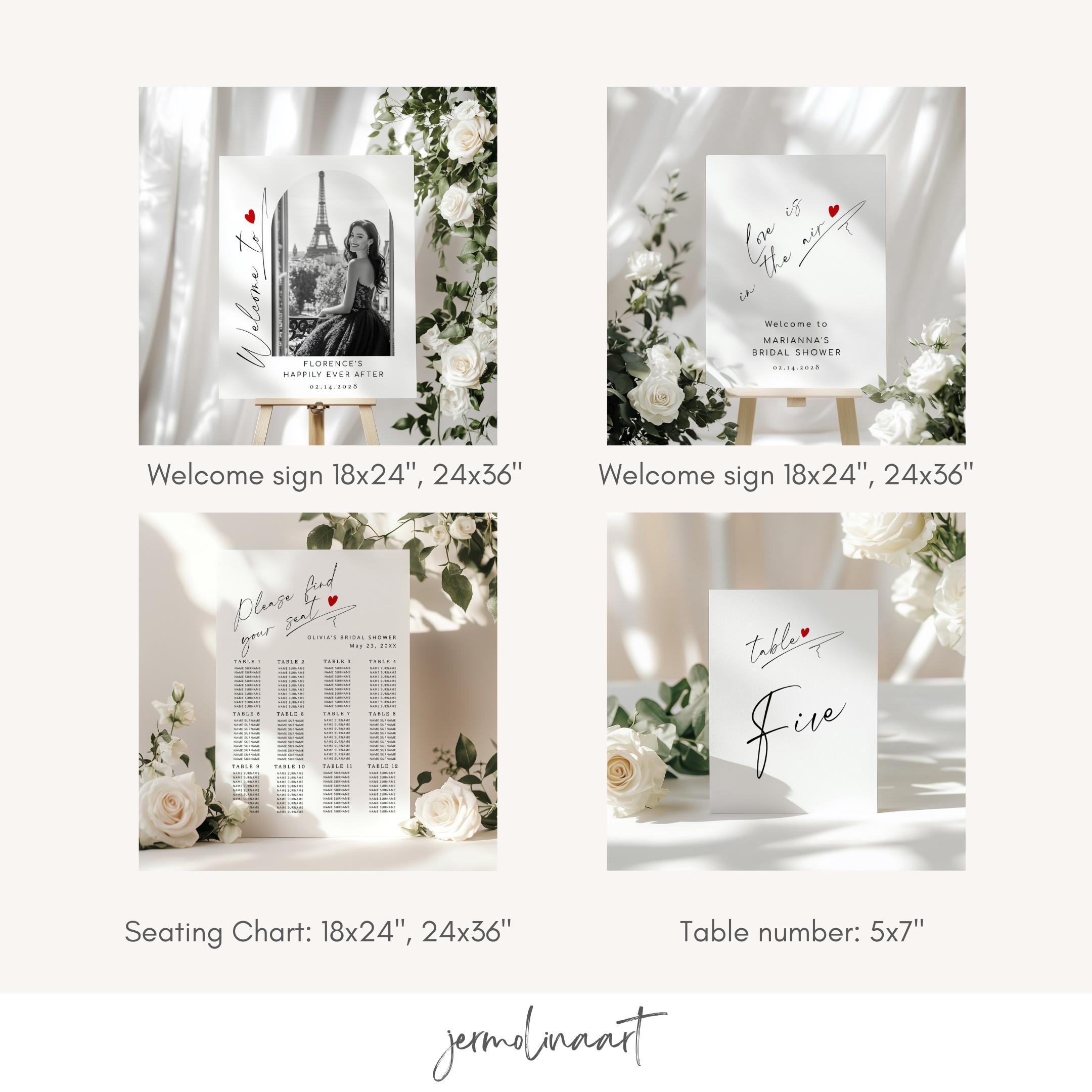 Love is in the Air Minimalist Bridal Shower Bundle. Valentines heart script Editable templates