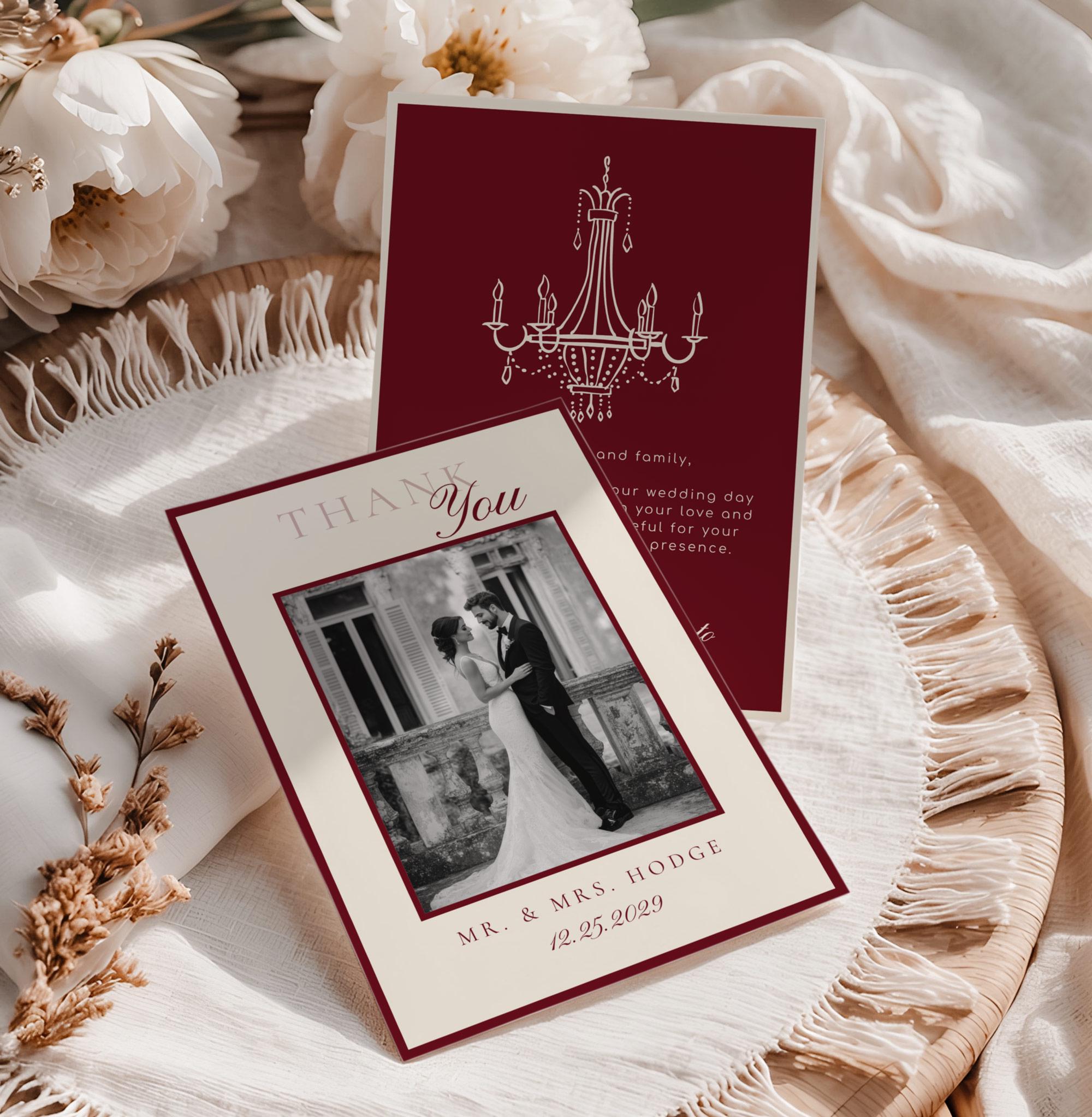 Luxury Old Money Wedding photo Thank you card Corjl ditable template