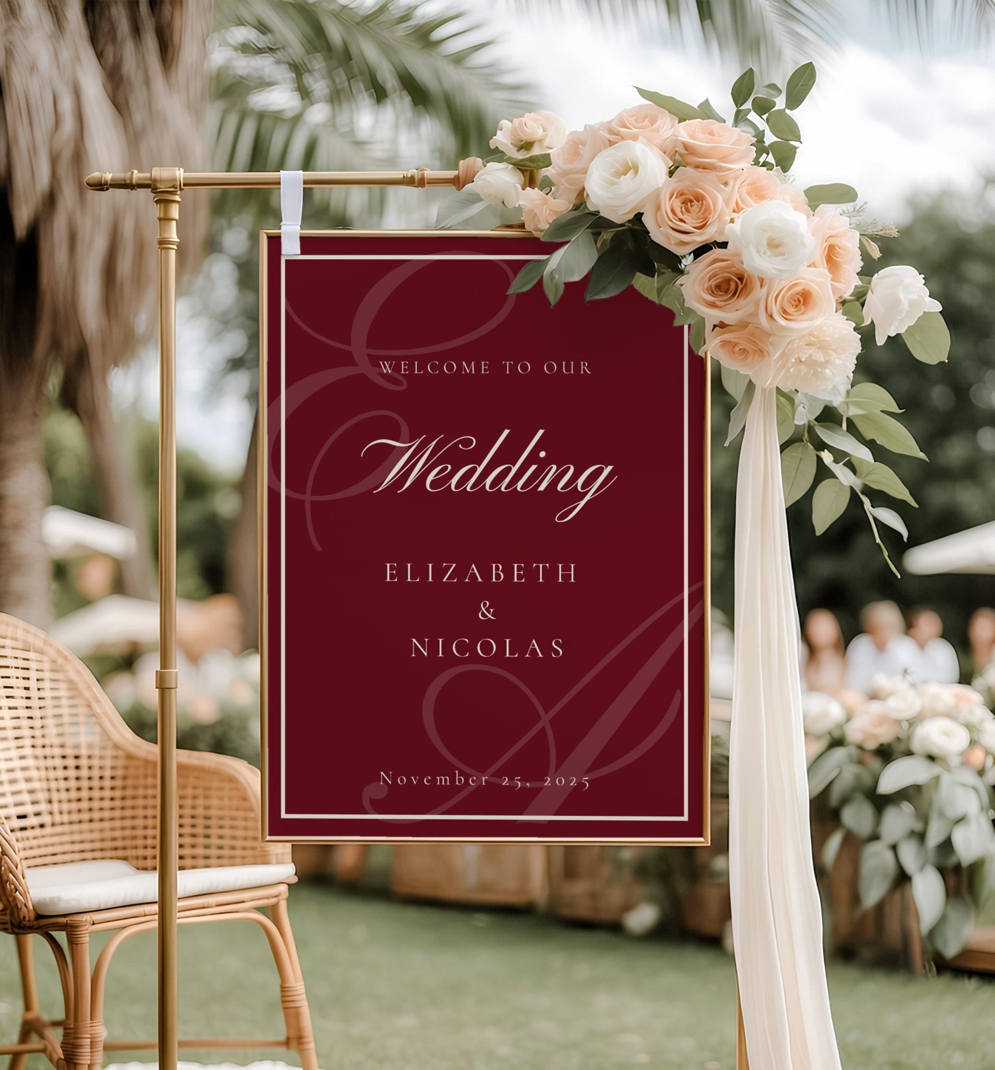 Monogram Deep burgundy Old Money Wedding Welcome sign template