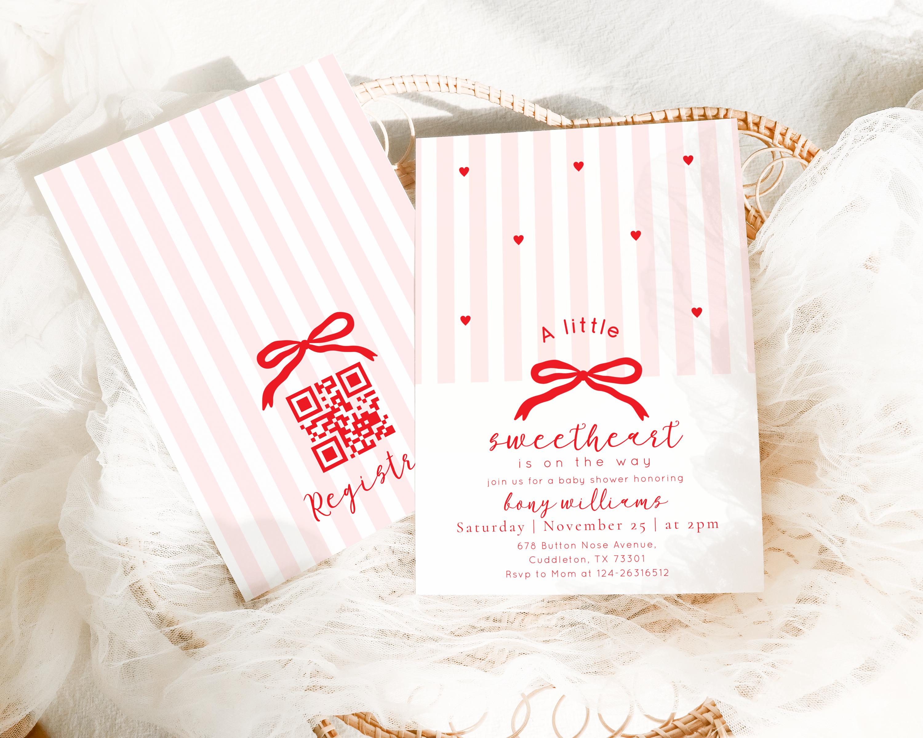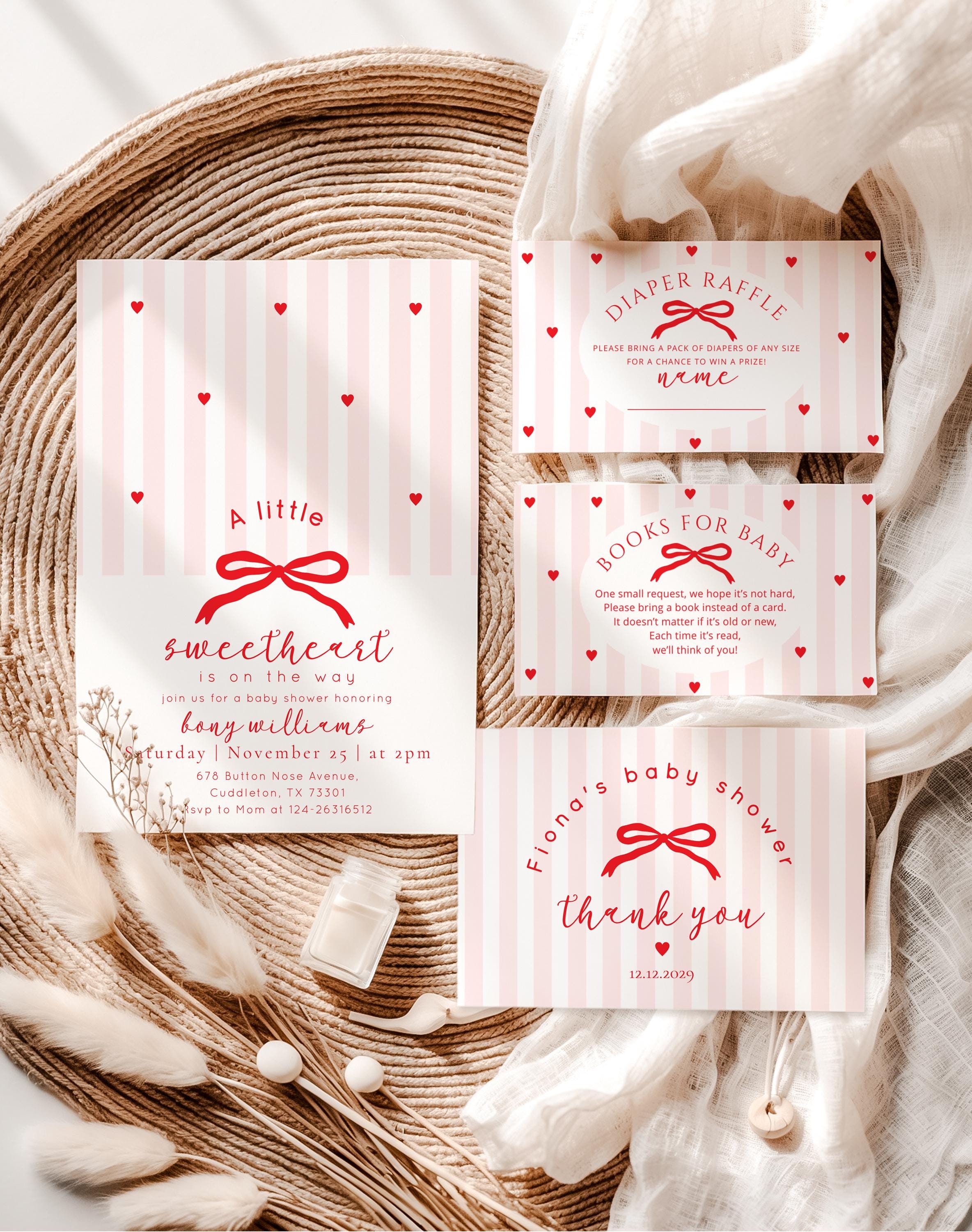 Little Sweetheart Whimsical Bow Baby Shower invitation bundle