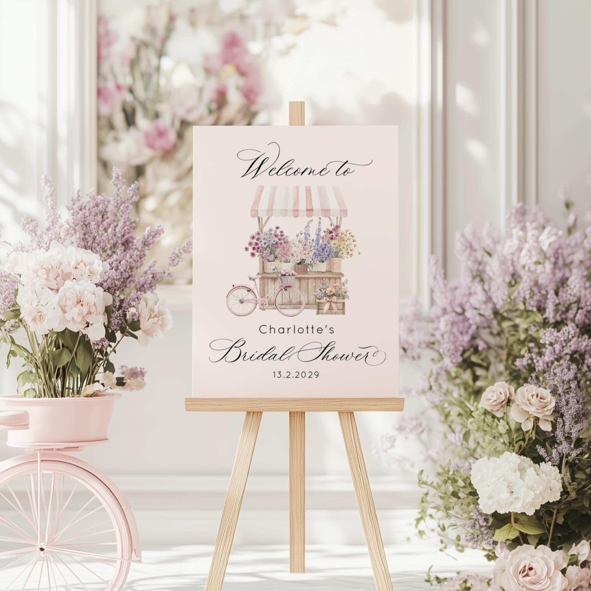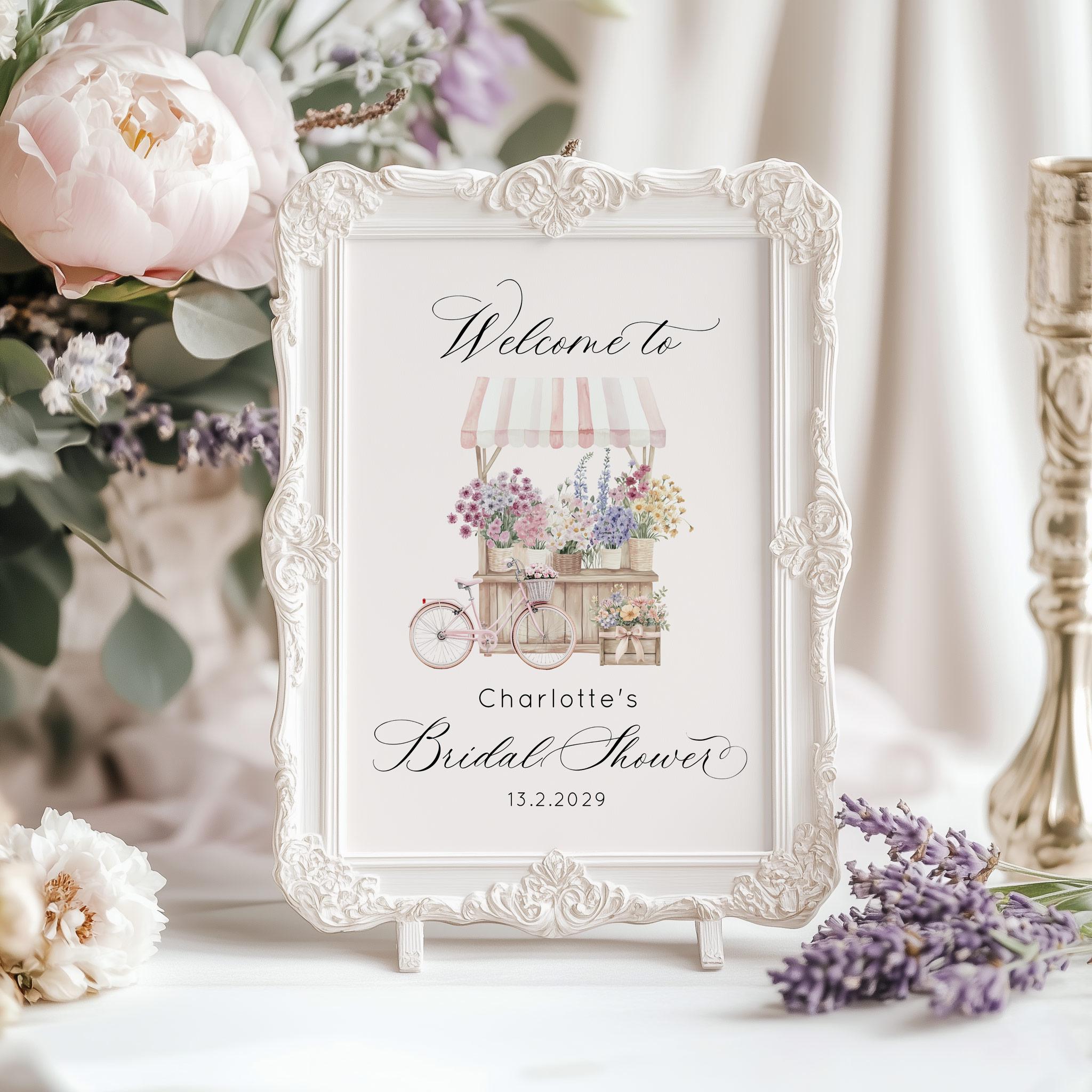 Fresh Off the market Bridal Shower Welcome sign template | Provence Floral Cart Corjl editable template