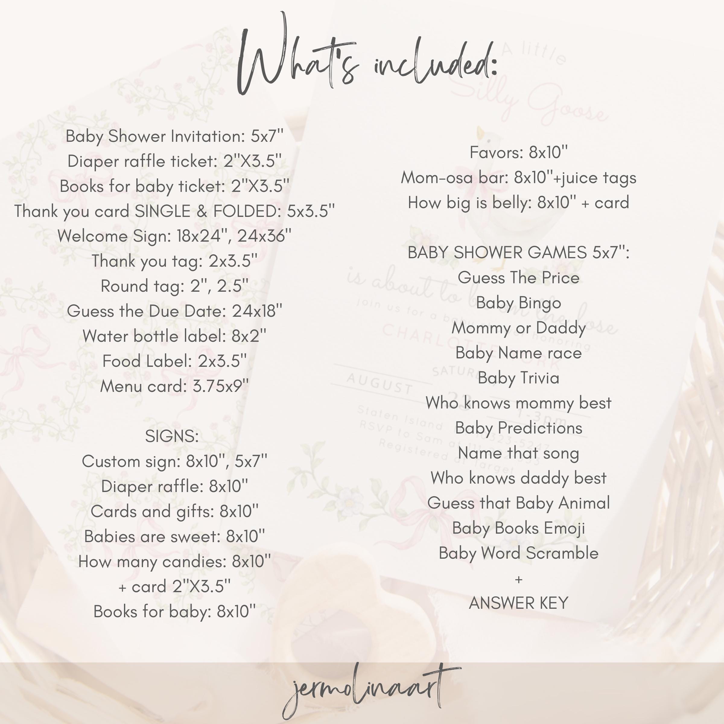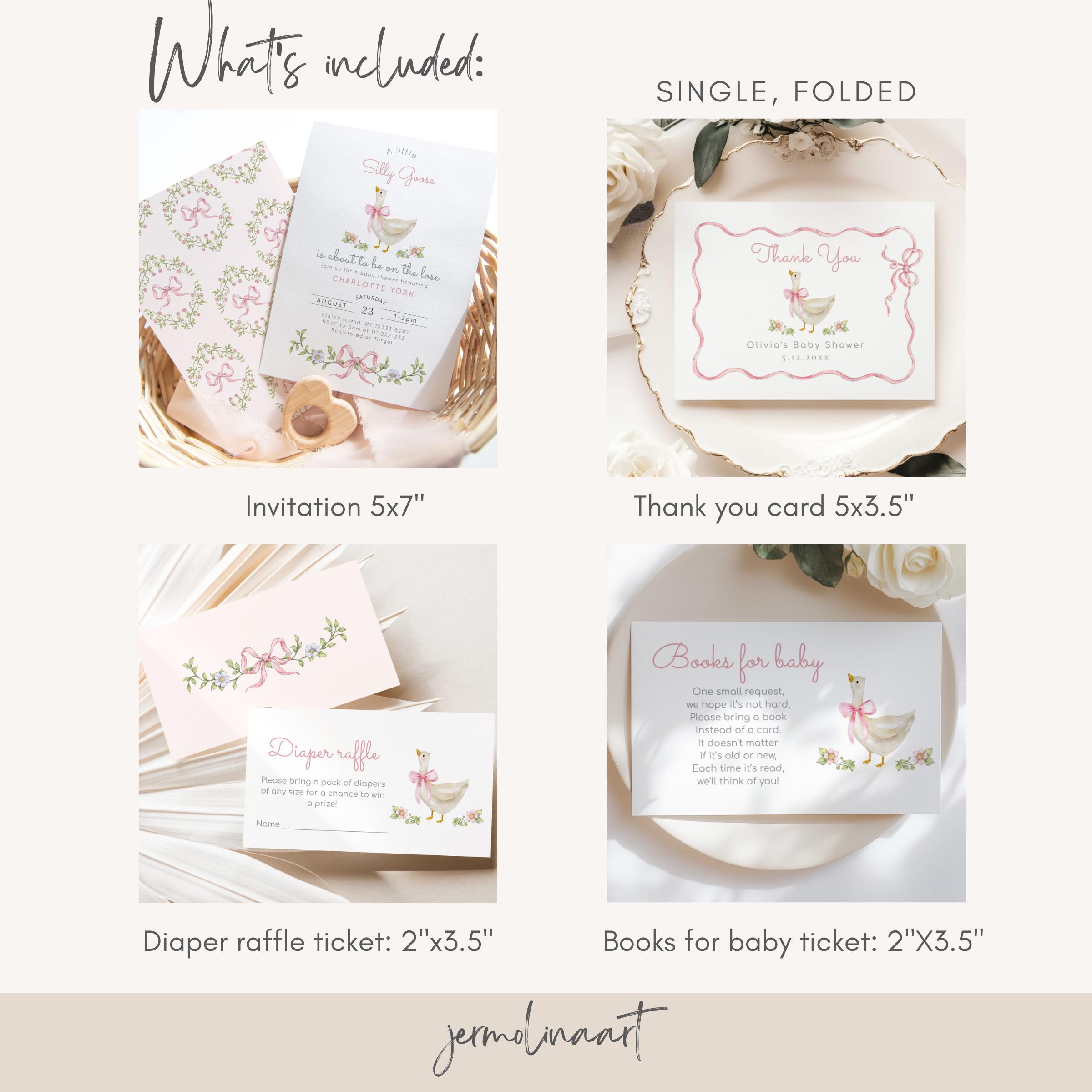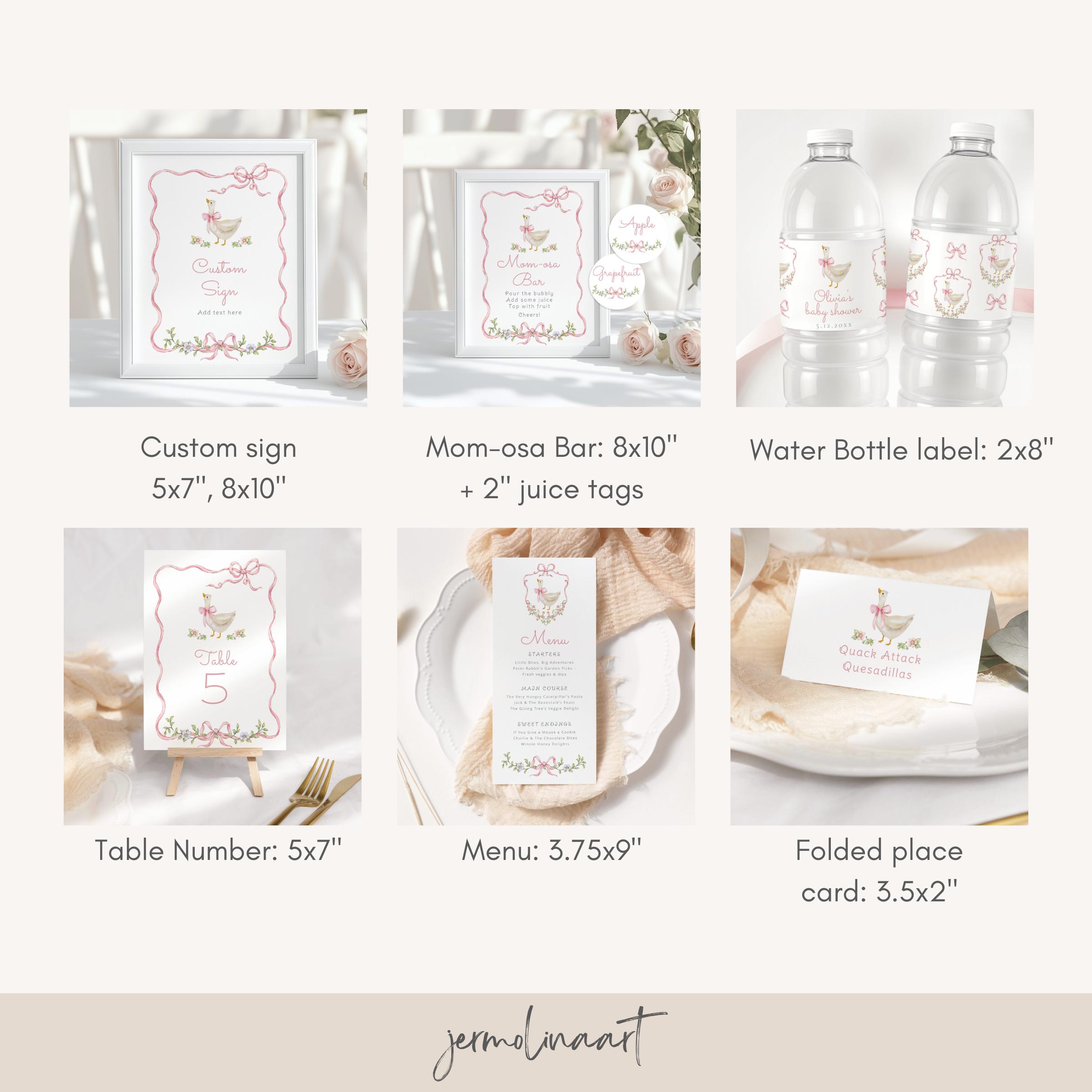 New Silly Goose Pink Bow Baby Shower bundle, Whimsical Floral Corjl Editable template