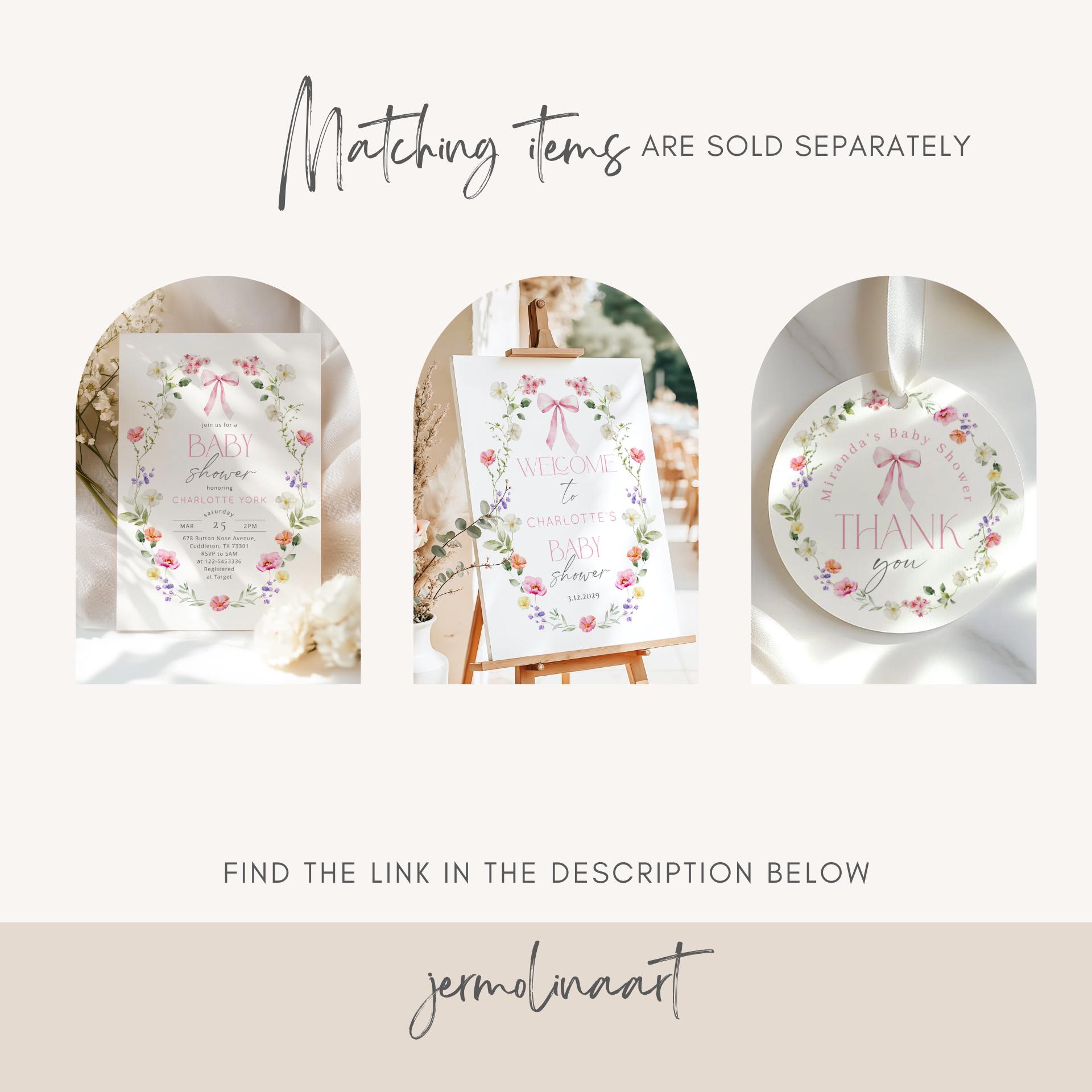 Wildflower Pink Bow Baby Shower Welcome sign template | Editable Corjl