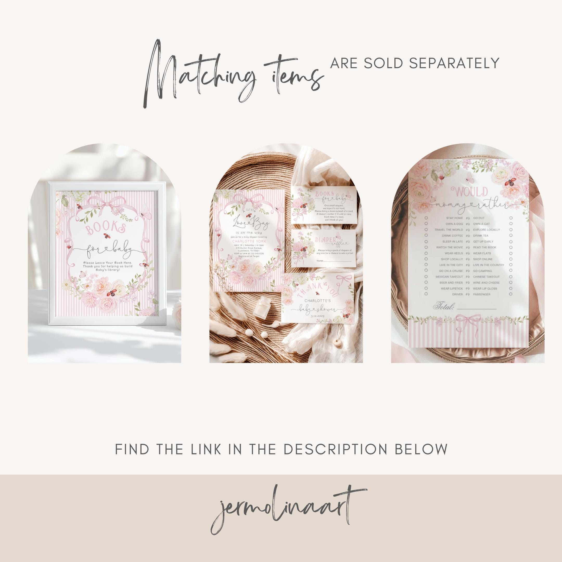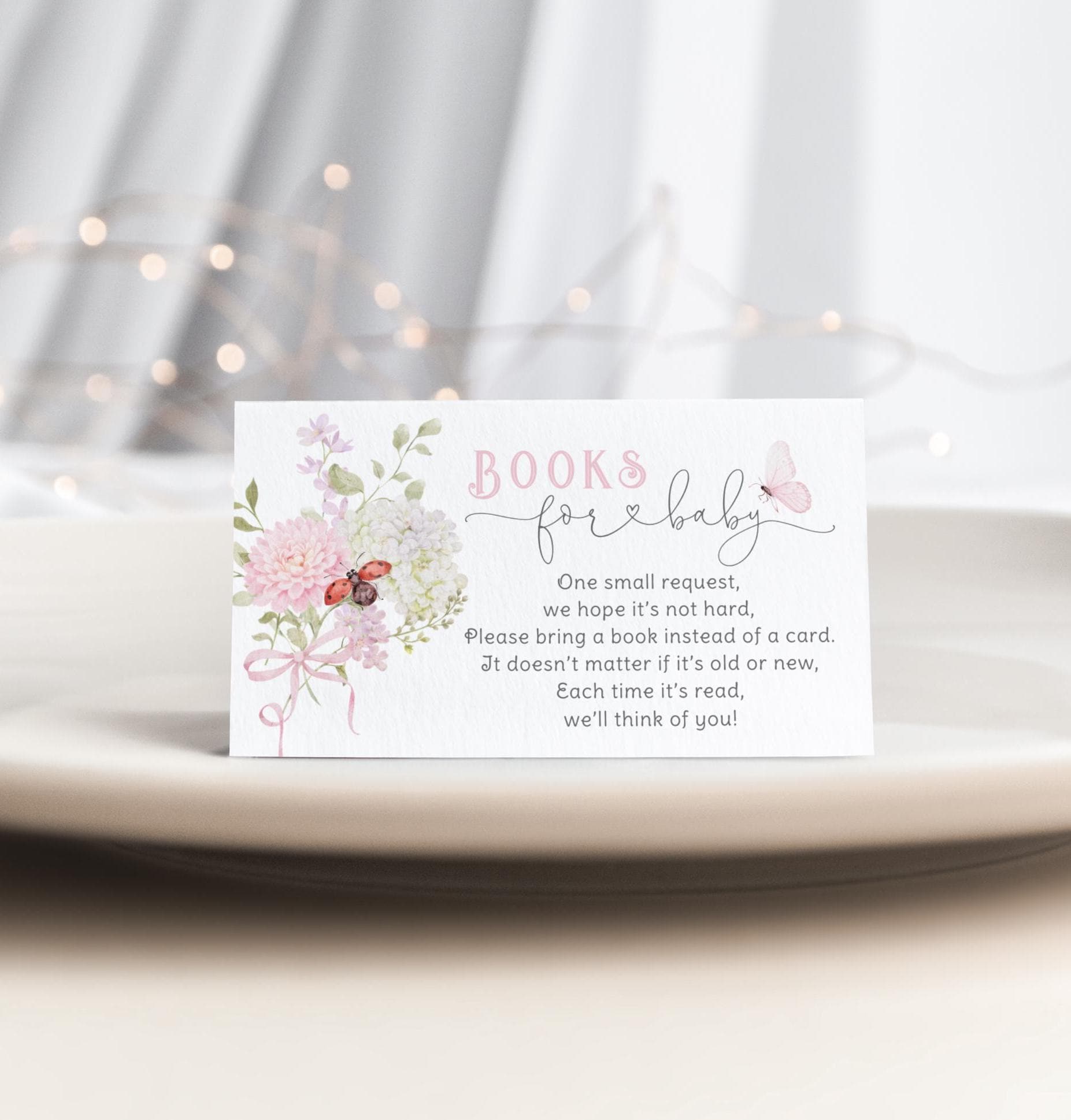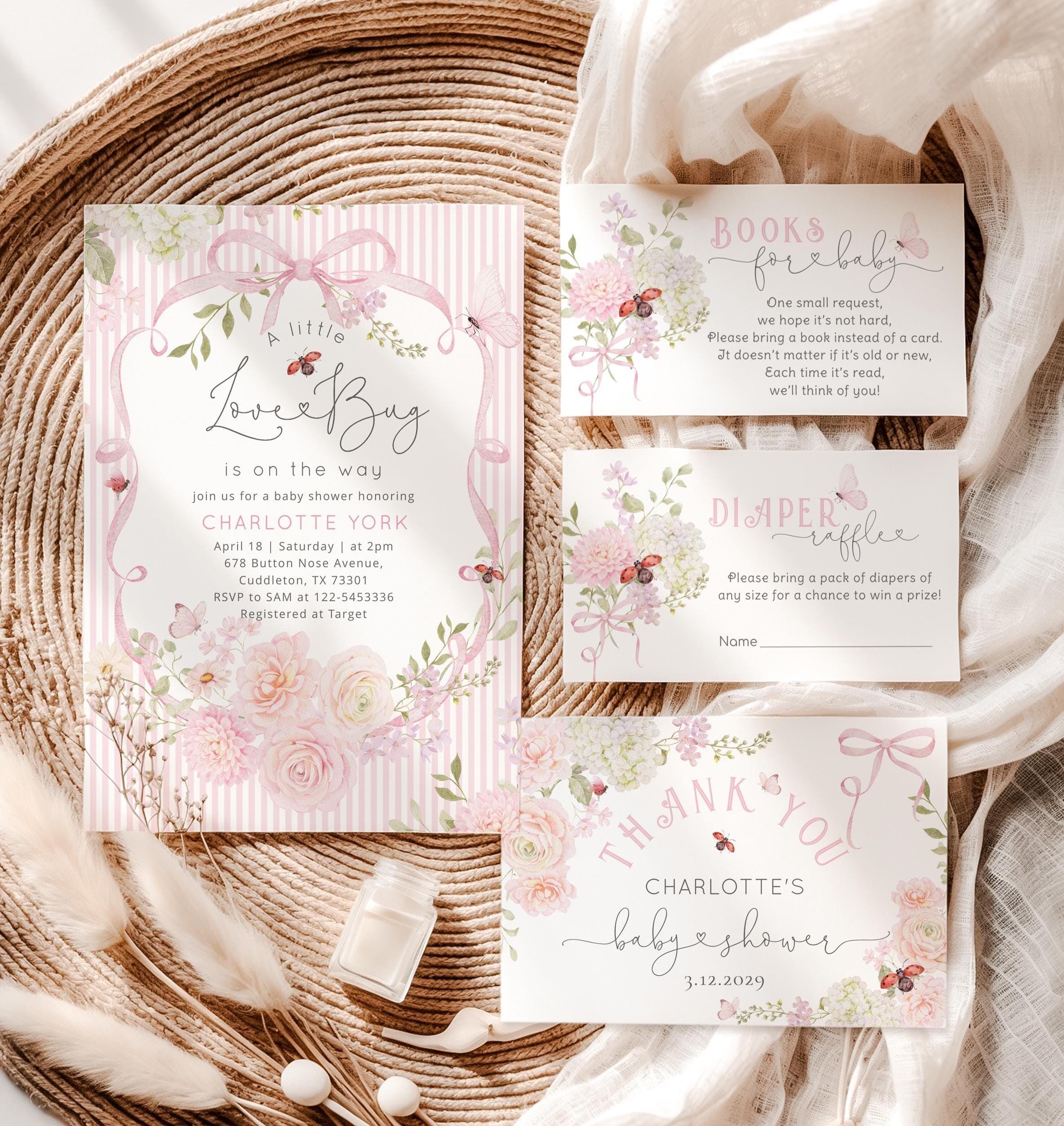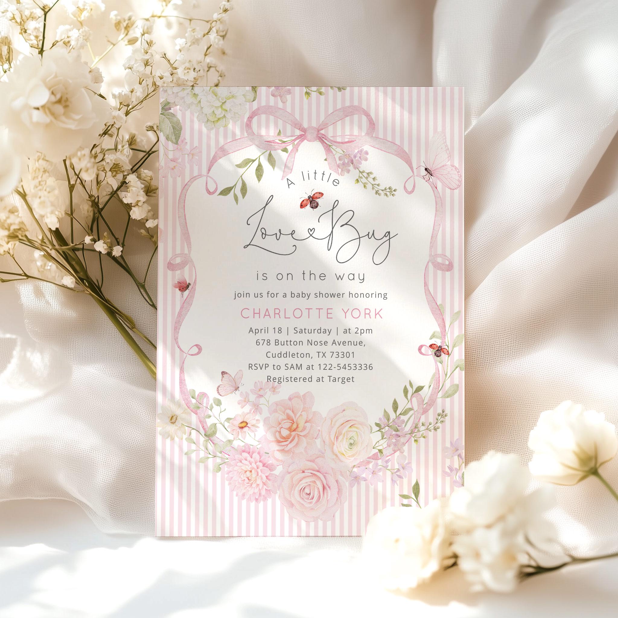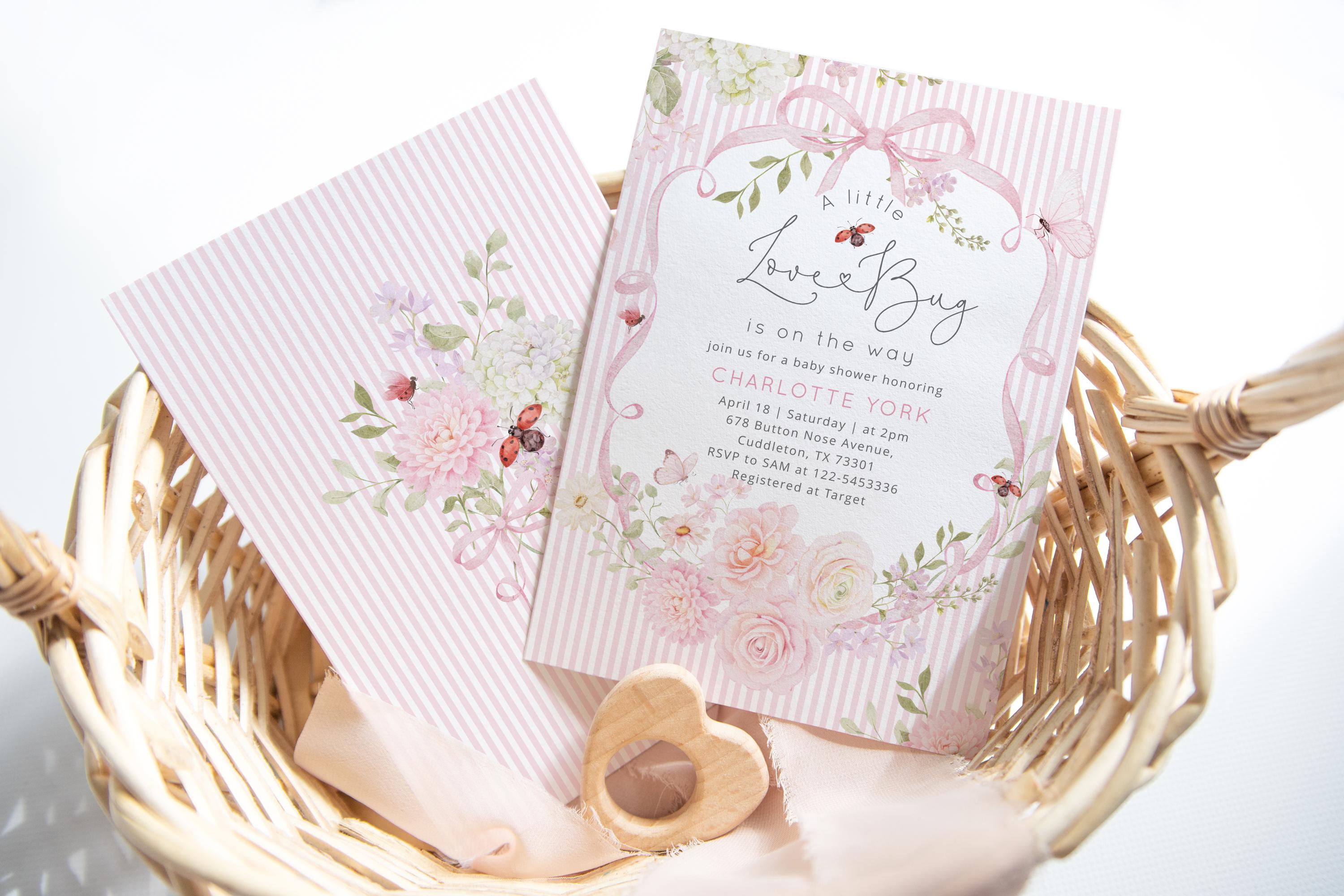 Love Bug Floral Baby Shower invitation Bundle | Ladybug Pink Stripes wildflower pack