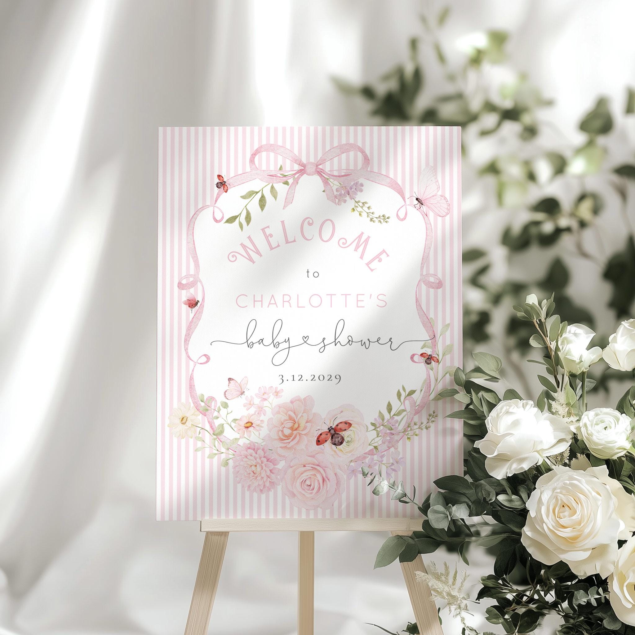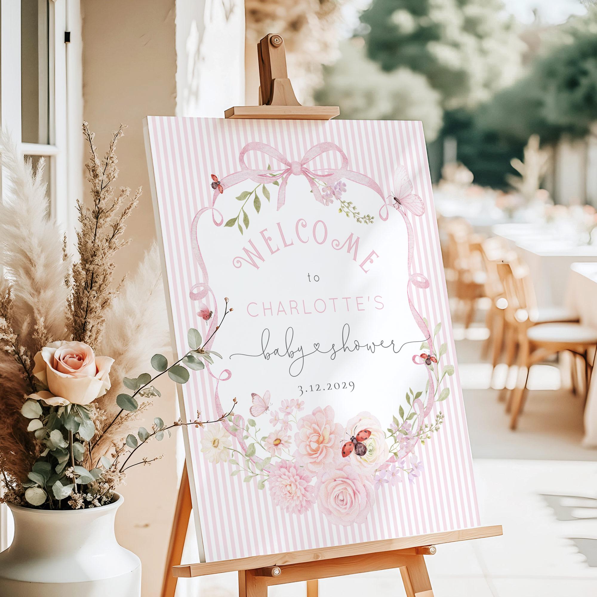 Love Bug Wildflower Baby Shower Welcome sign template | Editable Corjl