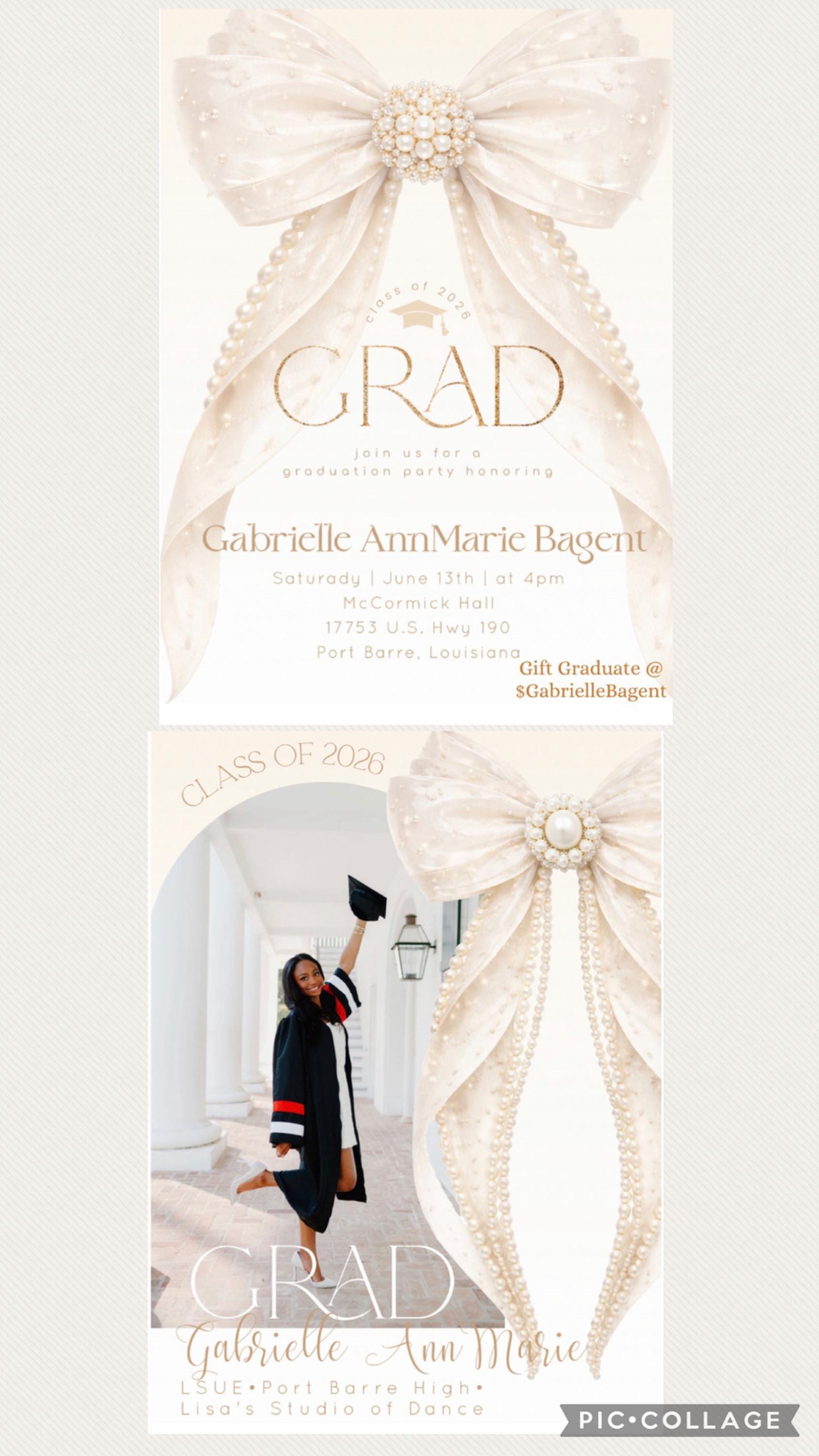 Pearl Bow Graduation party invitation template | Elegant beige gold photo editable Corjl