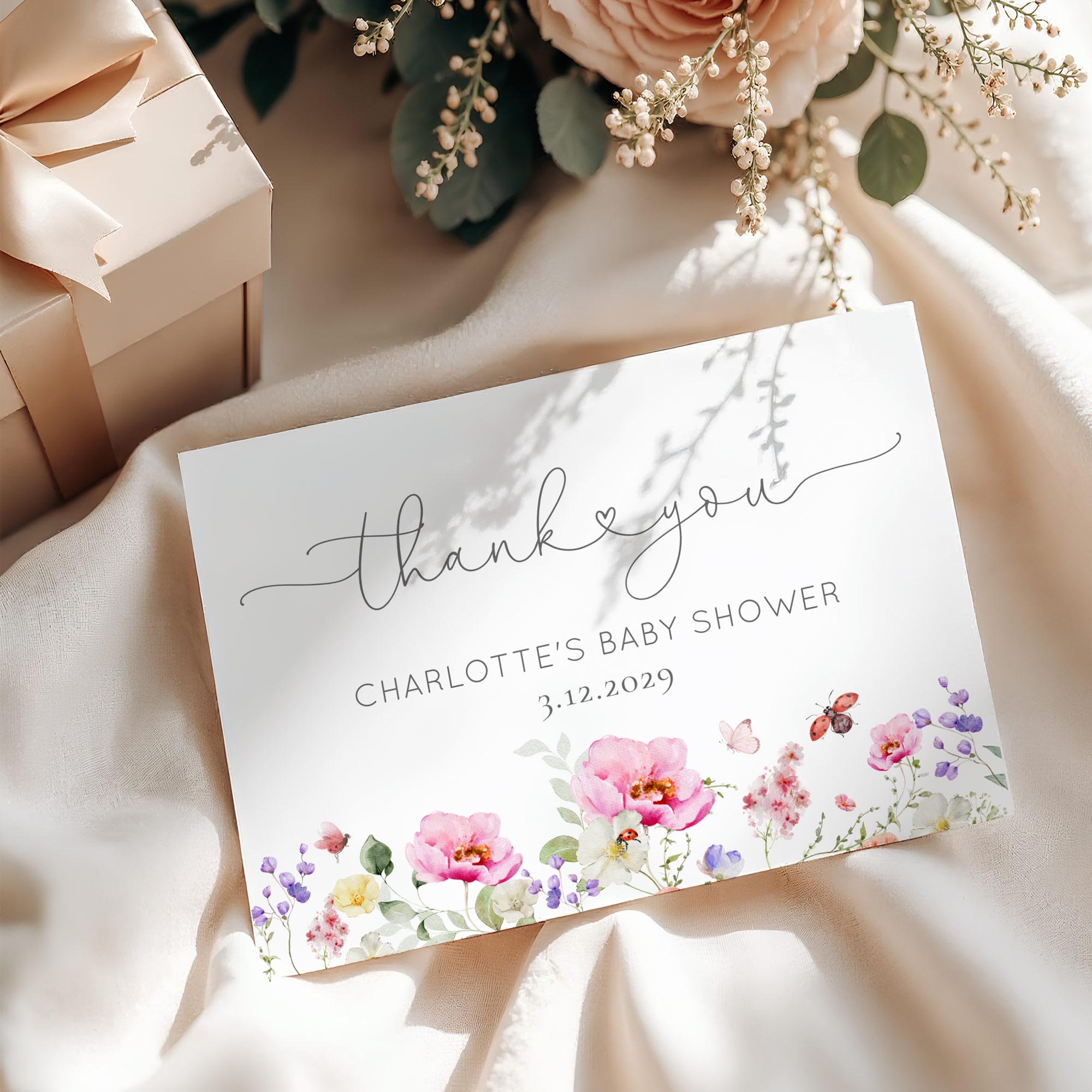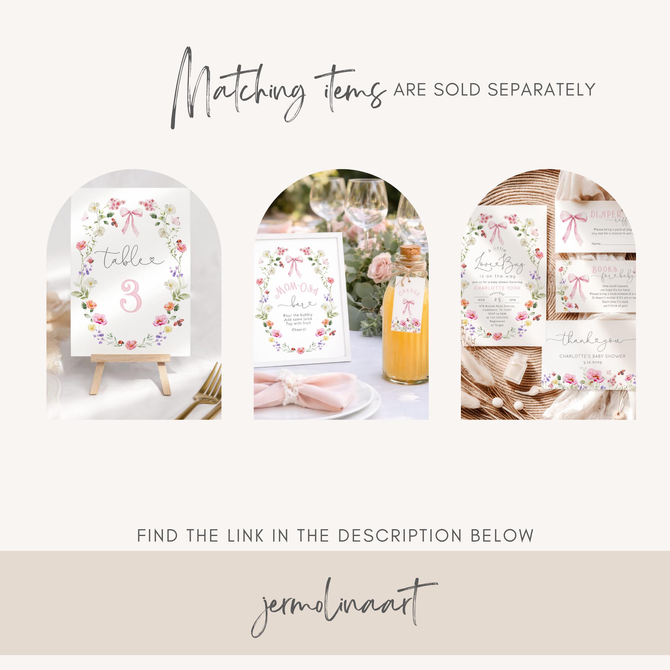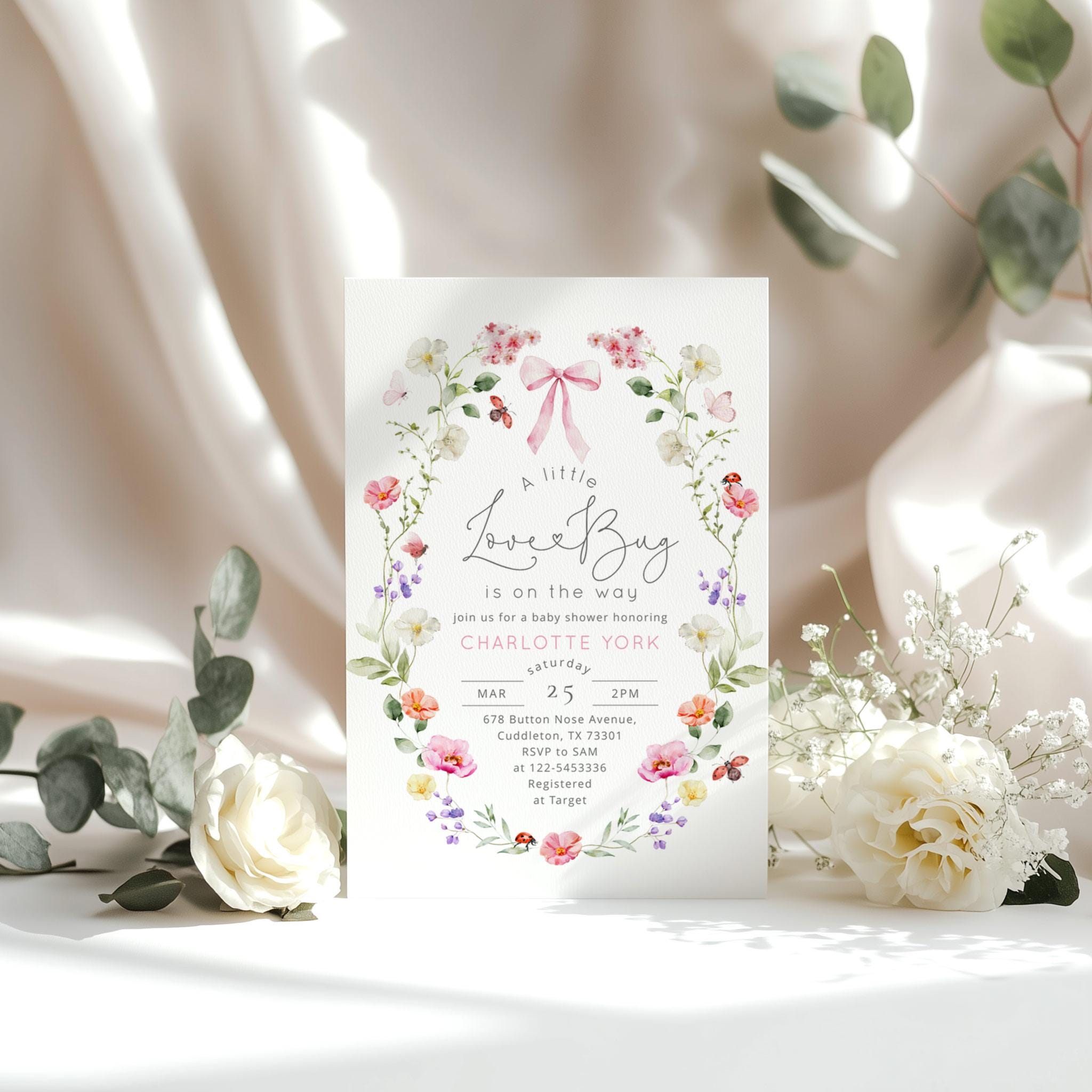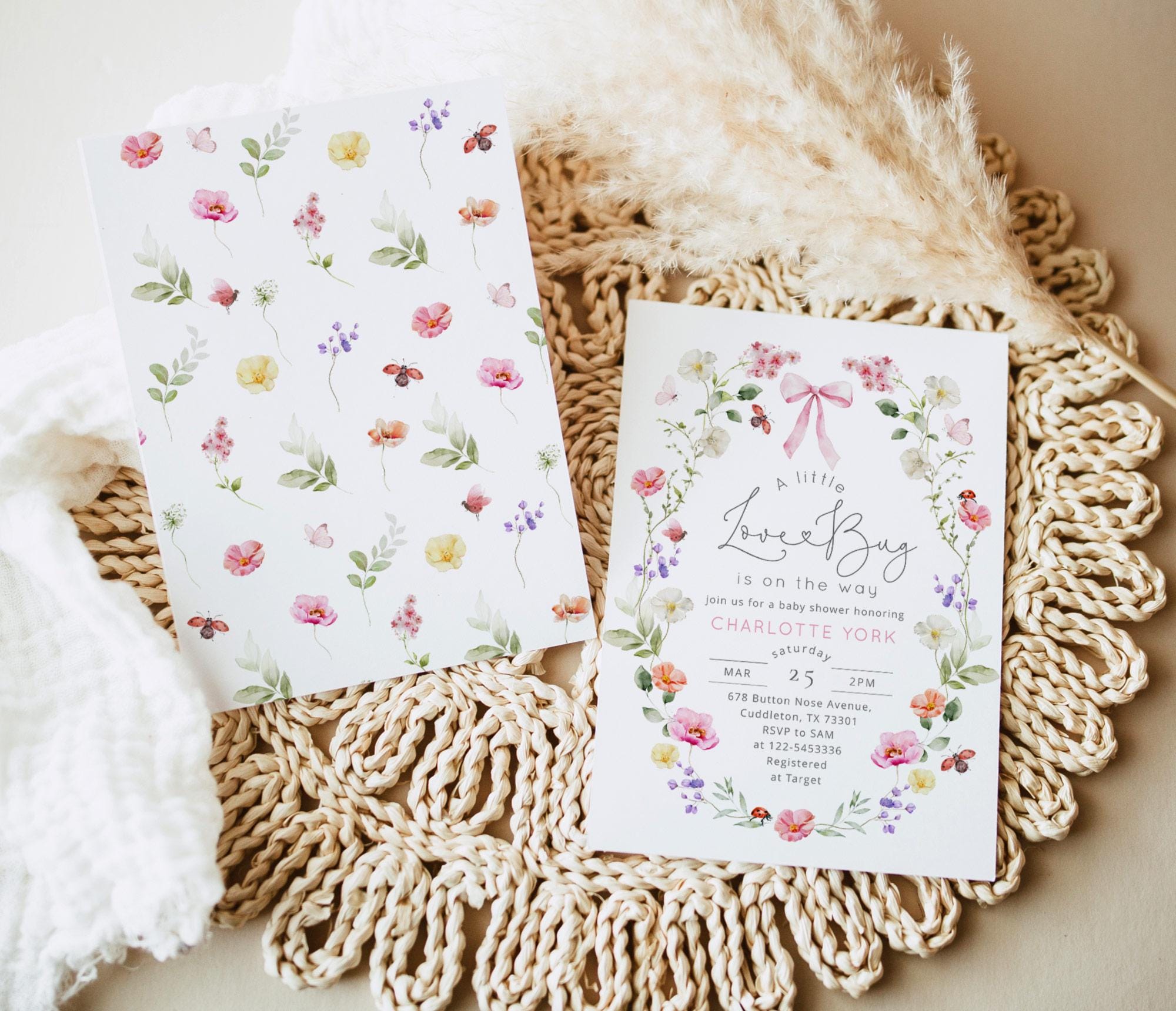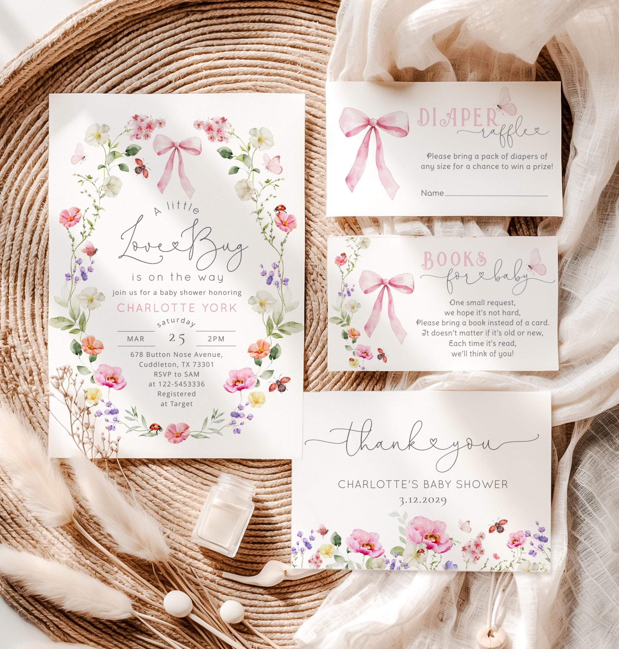 Little Love Bug Widlflower Baby Shower Bundle | Whimsical pink bow nvitation template