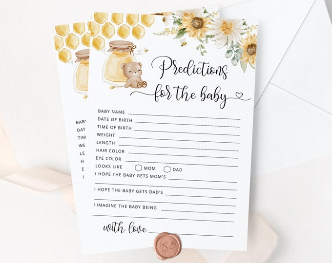 Bee Wishes for Baby card. Honey wishes for baby. Printable gender neutral Baby Shower Games. Instant download #bee