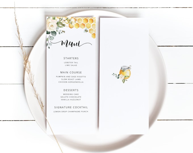 Bee Gender Reveal Invitation: Bumblebee, Honeycomb (Corjl Editable template) #08